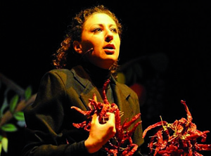 Portare il giornalismo d’inchiesta tra i velluti di un teatro. Mettere in scena le mafie e i meccanismi di intimidazione nei confronti di chi parla. Far salire sul palco loro, i giornalisti che ogni giorno vivono sulla pelle il peso dell’intimidazione, della scorta e della limitazione e solo perché hanno fatto sino in fondo il loro lavoro. Voce alle parole – Alla scoperta del giornalismo d’inchiesta che “minaccia” le mafie è l’evento di punta di questa edizione di “Onde Corte”, rassegna di spettacoli organizzata dalla Fondazione CorTe, pensato e progettato da Tiziana Di Masi nel corso della circuitazione di un altro suo spettacolo Mafie in pentola (nella foto) e andrà in scena in anteprima nazionale il 22 aprile alle 17 al Teatro di Coriano.