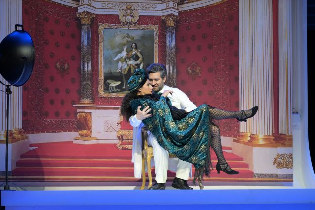 Il regista inglese ha così enfatizzato gli addentellati con l’attualità, già evidenti nel libretto dello Zar (scritto da Georg Kaiser, drammaturgo le cui opere vennero bandite dal nazismo), strizzando l’occhio al presente: l’emiciclo che delimita l’atelier parigino di Angèle, dove il protagonista va per farsi fotografare, offre una panoramica di ritratti dei più eminenti politici, compresi quelli odierni tra cui troneggia inevitabilmente la ex cancelliera Angela Merkel. Basta poi qualche fulminante istantanea a far percepire il pericolo che incombe sullo zar – per ucciderlo, un gruppo di anarchici si sono sostituiti alla titolare dello studio fotografico e ai suoi collaboratori – attraverso l’evocazione di celebri omicidi storici: da Cesare ai Romanov a Kennedy. Se il tentativo dei quattro rivoluzionari è destinato a restare infruttuoso, nel frattempo lo zar è rimasto affascinato dalla finta fotografa con cui comincia a flirtare, innescando situazioni da pochade. Non bisogna dimenticare, del resto, che si tratta di una Zeitoper, secondo la moda di quegli anni (Der Zar andò in scena a Lipsia nel 1928): genere in cui abbondavano le allusioni alle comiche del cinema muto, come pure all’operetta, rivisitata però in forma del tutto parodistica.