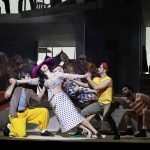 Lo spettacolo di Cherstich propone dunque un’orgia di trovate: alcune sono divertenti, ma non fanno neppure in tempo a sedimentare e subito vengono travolte da una raffica di stimoli successivi. Lo stordimento visivo distoglie l’attenzione dal versante musicale: il pubblico, così, non distingue più se la comicità nasce dalle invenzioni registiche o dal formidabile ingranaggio comico innescato dalla musica. Con un fraintendimento – che innesta la marcia indietro rispetto a quanto si riteneva ormai acquisito per sempre – il genio di Rossini viene in tal modo declassato a quello di un qualsiasi autore farsesco, come succedeva fino a non molti anni fa.