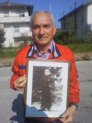 Un piccolo gruppo di ricerca (War Time Friends) nell’ambito dell’Università per adulti di Lugo, indagando su eventi minori, seppur significativi e ricchi di particolari, accaduti nelle nostre terre durante l’ultima fase della Seconda Guerra Mondiale, ha avuto la possibilità di visionare un significativo numero di filmati storici girati dagli stessi canadesi in Italia, in quel periodo, e tra questi filmati sono stati rinvenuti alcuni frammenti video che mostrano un ragazzino, John, mano nella mano con alcuni soldati canadesi. Il ragazzino è addirittura in divisa, come un perfetto piccolo soldato, ed ha pure i gradi di sergente canadese con il commento video che ribadisce come le riprese siano state effettuate nell’area di Rimini. Questa storia ha appassionato pure i curiosi nostrani, tra cui Giuseppe Vanni, noto docente di Lettere presso l’istituto “Gobetti-De Gasperi” di Morciano, che è riuscito in poco tempo a rintracciare il protagonista di questa storia, oggi 75enne (nativo del 1938). Il bambino-sergente di allora (nella foto Giancarlo Simoncelli mostra orgoglioso un riquadro storico che lo ritrae da bambino sergente). “La guerra per noi cattolichini è stata caratterizzata soprattutto dai bombardamenti aerei e la mia famiglia, come tante altre in quel periodo, li ha vissuti molto da vicino – esordisce lucidissimo Giancarlo Simoncelli, divenuto poi infermiere di professione – noi ci eravamo rifugiati in campagna nel 1944, nella zona dove oggi sorge il casello A14, per evitare di morire tra le macerie, nell’eventualità in cui la casa fosse stata bombardata. A quell’epoca l’attuale zona dell’A14 era aperta campagna e pareva di essere distanti parecchio del mare, non era certo come oggi. Rimanemmo in quella zona per alcuni giorni e notti. Ma proprio quando stavamo per tornare tra le mura domestiche… la notte stessa in cui decidemmo che avremmo fatto ritorno la casa fu bombardata!”.