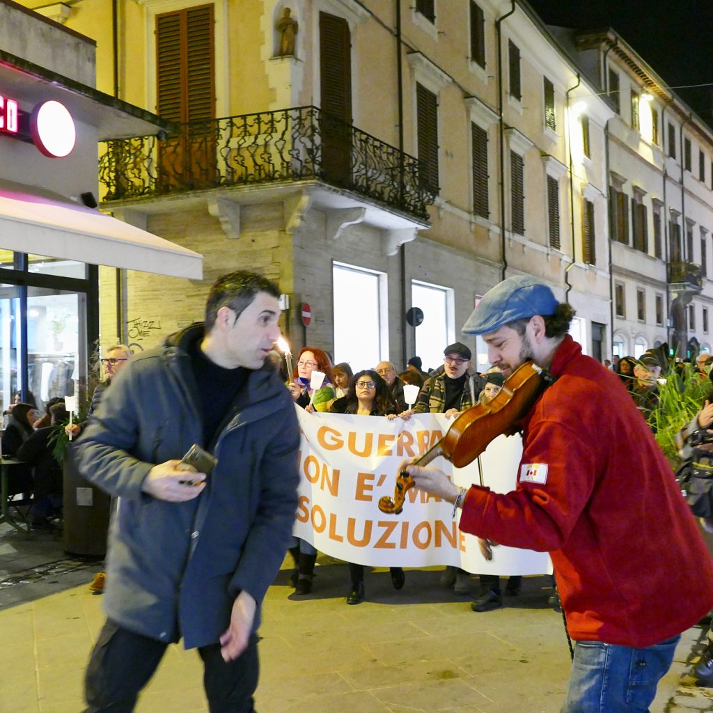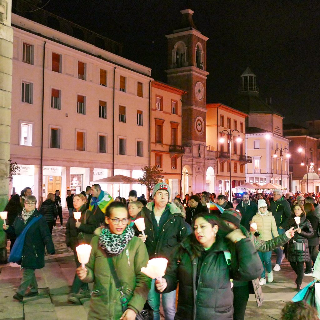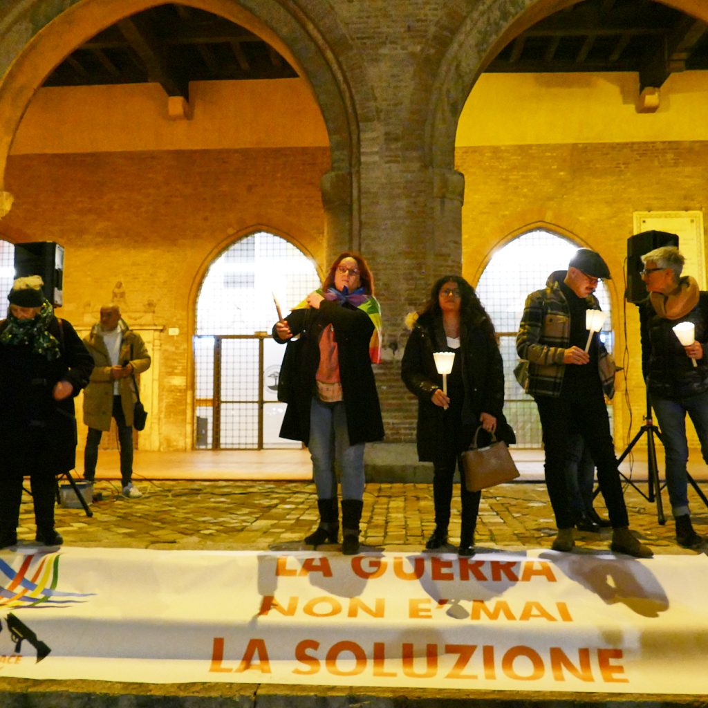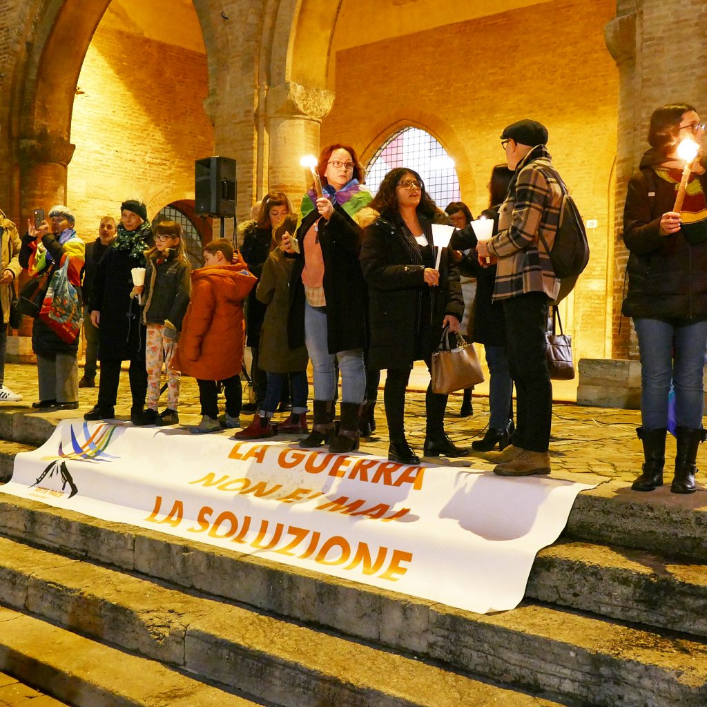 A un anno dallo scoppio del conflitto nell’est europeo, con l’invasione dell’Ucraina da parte della Russia, Rete Pace ha organizzato una fiaccolata. L’iniziativa è stata promossa da 19 sigle fra cui Cgil, Cisl, Arci, Papa Giovanni XXIII, Emergency, Libera. Il corteo è partito dal Ponte di Tiberio, 400 le persone che lì si sono radunate e hanno acceso le fiaccole per poi partire alla volta di piazza Cavour, passando per piazza Ferrari. Tra esse, a sorpresa, anche il vescovo Nicolò. Fra i volti noti in piazza inoltre la presidente dell’Assemblea legislativa regionale Emma Petitti, gli assessori di Rimini Francesca Mattei e Kristian Gianfreda, la sindaca di Santarcangelo, Alice Parma,il segretario provinciale del Pd, Filippo Sacchetti.