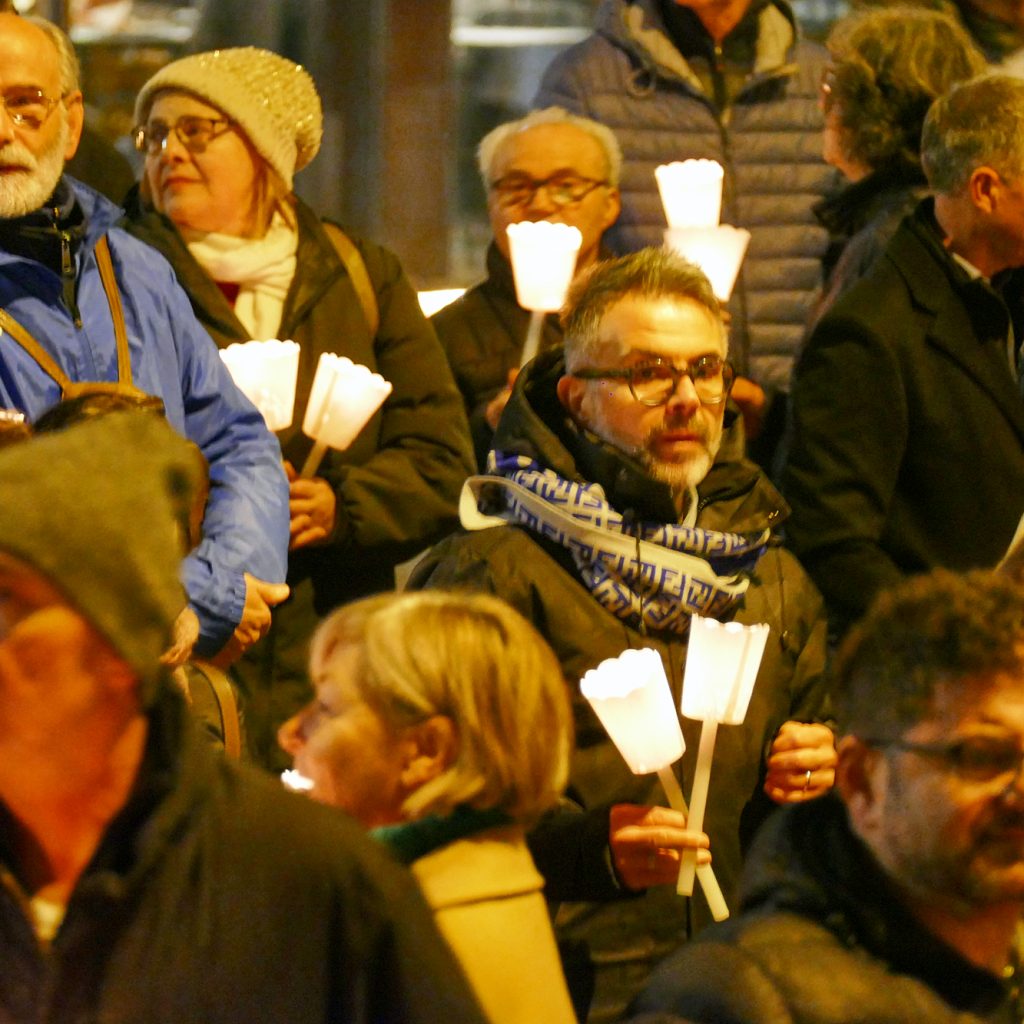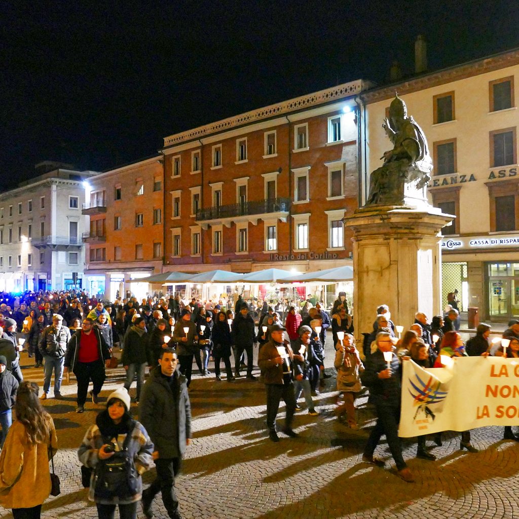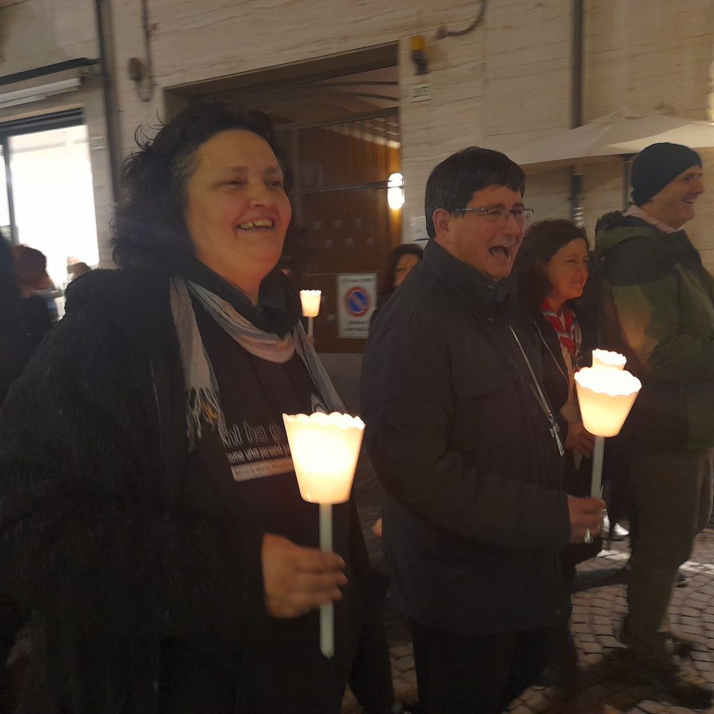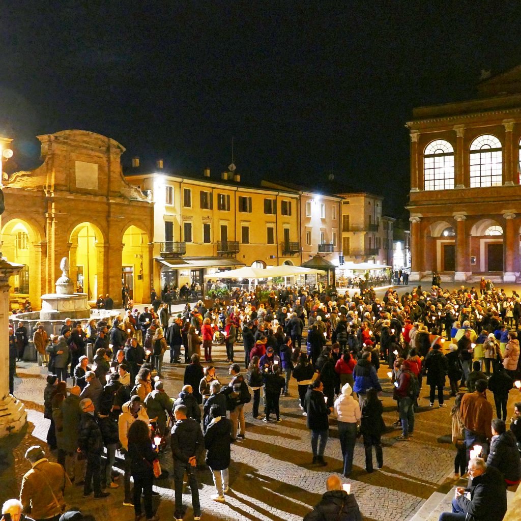 A un anno dallo scoppio del conflitto nell’est europeo, con l’invasione dell’Ucraina da parte della Russia, Rete Pace ha organizzato una fiaccolata. L’iniziativa è stata promossa da 19 sigle fra cui Cgil, Cisl, Arci, Papa Giovanni XXIII, Emergency, Libera. Il corteo è partito dal Ponte di Tiberio, 400 le persone che lì si sono radunate e hanno acceso le fiaccole per poi partire alla volta di piazza Cavour, passando per piazza Ferrari. Tra esse, a sorpresa, anche il vescovo Nicolò. Fra i volti noti in piazza inoltre la presidente dell’Assemblea legislativa regionale Emma Petitti, gli assessori di Rimini Francesca Mattei e Kristian Gianfreda, la sindaca di Santarcangelo, Alice Parma,il segretario provinciale del Pd, Filippo Sacchetti.