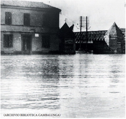 “Quell’anno aveva piovuto tanto, come adesso, e il mare non riceveva. Erano le quattro e mezza del mattino del 23 settembre: l’acqua melmosa e fredda cominciava ad arrivare alla fila delle case che allora erano proprio sul Marecchia. Proprio qui, davanti alla trattoria ‘Marianna’, c’era tutta una fila di vecchie case che delimitava la vecchia via Emilia. Non esisteva ancora il viale Tiberio coi suoi magnifici pini. Venne realizzato negli anni fra il 1927 e il 1938, durante il fascismo, demolendo proprio tutte quelle vecchie case che partivano dall’angolo del ponte dove c’era la vecchia bottega della Rosina Bomboloni…”.