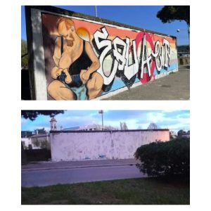 Nel senso che a livello artistico – tenendo ovviamente conto che la spray art ha dei criteri estetici tutti suoi – appariva approssimativo, incerto, acerbo, di chi ancora non ha la piena padronanza del tratto. L’immaturità,sia chiaro, è un diritto di tutti gli artisti: non si nasce imparati. Tutti i grandi cantautori hanno nel cassetto la loro prima canzone scritta in età giovanile di cui si vergogneranno per tutta la vita. Però quando si è immaturi sarebbe meglio tenere un profilo adeguato. Giocarsi il messaggio bomba quando ancora con la bomboletta si ha ancora da fare un po’ di gavetta rischia di apparire inevitabilmente pretenzioso. Fare quelli che vogliono sconvolgere i benpensanti su un muro in bella vista per di più in una strada di ampio passaggio, quando sarebbe meglio affinare ancora le proprie capacità su muri più defilati, rischia di essere controproducente. I grandi artisti sono quelli che riescono a essere pienamente padroni allo stesso tempo dei loro contenuti e della propria arte. Soprattutto, in questo caso, nella città di Eron.