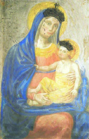 Anche nella nostra zona le “Madonne del latte” sono numerose. Senza la pretesa di farne un censimento, ricordo quelle che si trovano nelle chiese di Montefiore, Mondaino, Valliano di Montescudo, Talamello, Gabicce, Serravalle, San Marino. Solo una di queste in passato ha subito una “censura”: è la Madonna della chiesa parrocchiale di Serravalle, fatta malamente ridipingere nell’Ottocento da una parroco puritano. Restaurata nel 2008, ha ritrovato la sua iconografia originaria e una purezza formale che induce a ritenerla dipinta da Bittino da Faenza intorno al 1410. La veneratissima Madonna di Bonora a Montefiore è un po’ più antica di questa; anch’essa è stata più volte ritoccata e ridipinta, ma ha mantenuto intatta la sua iconografia, con un Bambino vorace che tiene ben stretta con entrambe le mani la mammella della Madre. Chissà che un giorno non sia possibile restituire anche a lei i lineamenti e i colori originari, forse pienamente trecenteschi, che potrebbero darci un’immagine più genuina ed espressiva della sua solenne maternità.