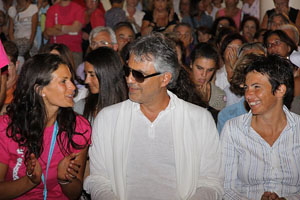 “Amicizia e ammirazione per queste persone di buona volontà”. Andrea Bocelli è breve, conciso a tratti disarmante nello spiegare il perché lui, uno dei cantanti più famosi al mondo ha prestato la sua voce per sostenere un gruppo di giovani impegnati in una missione di evangelizzazione di strada e di spiaggia? Il 52enne cantante e tenore toscano, un artista capace di raccogliere applausi a New York come di cantare davanti al Papa, è sceso così sulla spiaggia di Riccione per prendere parte alla missione che fa risuonare lo slogan di Gesù Cristo “Chi ha sete venga a Me” in uno dei templi del divertimentificio. Il tempo è stato inclemente, una delle pochissime giornate di maltempo dell’estate 2010 sulla riviera, ma qui nessuno se n’è accorto: i ragazzi hanno comunque invaso la spiaggia al bagno 85 con l’animazione pomeridiana fatta di musica, danza e testimonianze, e Bocelli li ha accompagnati, tra lo stupore di tanti turisti. Poi, alle 21, la messa, dove centinaia di persone dentro e fuori la chiesa dell’Alba hanno goduto dell’interpretazione del tenore del “Panis Angelicum” di Cesar Franck e dell’“Ave Maria” di Schubert. L’affluenza alla celebrazione eucaristica è stata talmente alta che neppure il grande schermo allestito all’esterno della chiesa è riuscito a soddisfare tutti i presenti, mentre gli accessi in streaming hanno fatto registrare cifre record. “Volevo portare il mio piccolo contributo all’iniziativa. – spiega il cantante – Spero di non aver distolto con la mia presenza l’attenzione verso la buona notizia annunciata da questi giovani”.