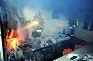 “Da gennaio ad oggi abbiamo effettuato più di 1.730 interventi”, spiega il responsabile di turno mostrandomi la schermata del pc che archivia ogni telefonata e ogni intervento. In media si parla di 4/5mila interventi l’anno; il 2009, per la precisione, ne ha registrati 4.120 distribuiti su un totale di 174 risorse umane, suddivise a loro volte in 76 nella sede centrale, 74 in quella di Miramare e 24 in quella di Cattolica. In ogni sede il personale è organizzato in squadre, composte solitamente da cinque persone. Ovviamente in questi dati non sono stati calcolati gli operativi negli uffici, altrimenti si arriva a un numero complessivo di 186 presenze. Appena scatta l’allarme la sala operativa annuncia quale squadra e quale mezzo verranno impiegati. Il cancello di uscita si apre automaticamente e l’automezzo è già fuori.