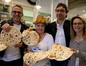 Bottura ha fatto un giro turistico dei locali della storica piadineria “Lella”, assaggiando le erbe pronte per i cassoni e manipolando, soddisfatto, gli impasti messi a riposo. “È dalla cura, dall’ordine e dall’ospitalità dei luoghi che si capisce se si mangerà bene in un posto. Qui si mangia bene!” è convinto lo chef emiliano.