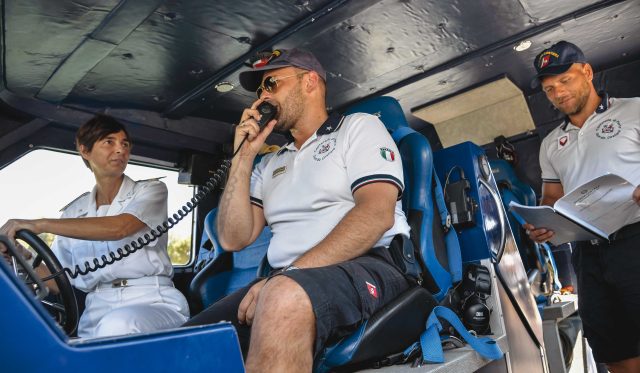 “Abbiamo attività stagionali ordinarie che fanno capo all’attività Mare sicuro che si estende quest’anno dal 17 giugno al 17 settembre. In questi mesi sono intensificate tutte le attività di vigilanza e presenza sul territorio del Corpo della Capitaneria di Porto, sia a terra (spiaggia, demanio, porto) che a mare. L’obiettivo è di salvaguardare la vita umana in mare e la tutela ambientale, in particolare, sulle numerose piattaforme off-shore di estrazione di fonti energetiche. Prevenendo e punendo, dove necessario, comportamenti illeciti. Per mare e per terra siamo nelle fasce di maggiore affluenza, dalle 10 alle 13 e dalle 15 alle 17, tutti i giorni. A turno siano mediamente in quattro. Poi ci sono situazioni in cui si rafforza la presenza. Il personale deve essere in possesso di determinati requisiti, inoltre siamo sottoposti annualmente a prove di capacità fisica, per garantire l’efficacia delle operazioni di soccorso e la salute stessa di chi interviene.