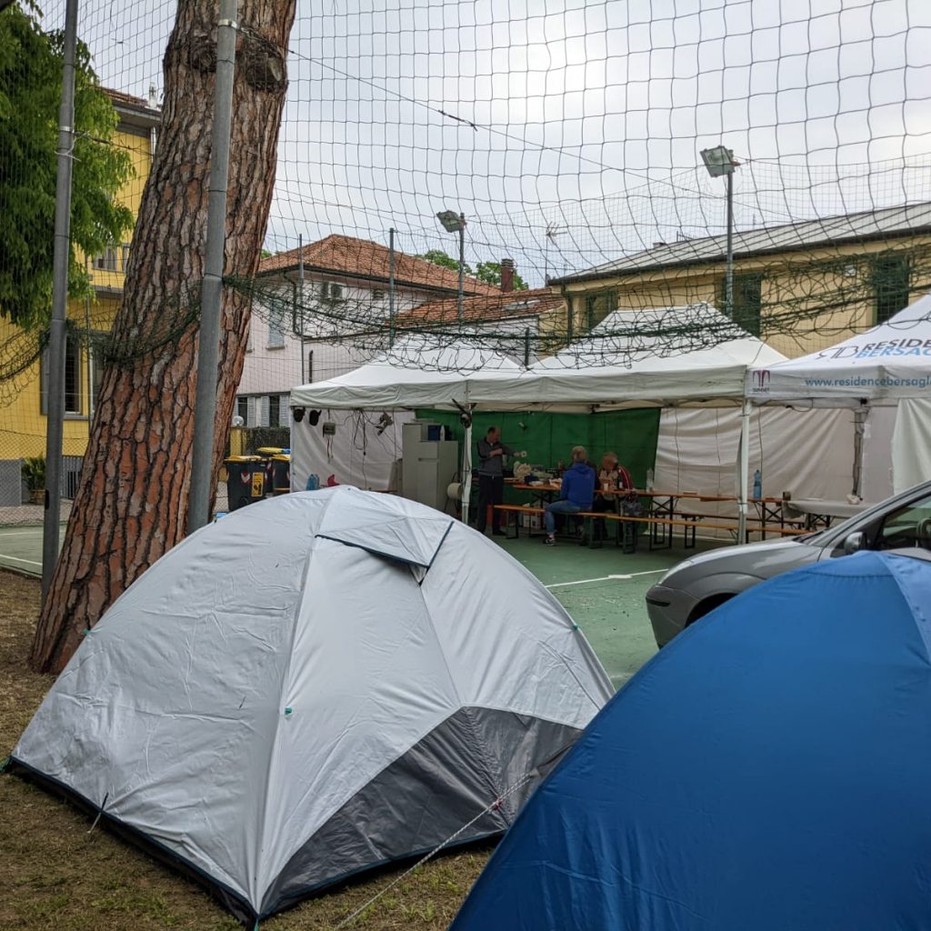 I gruppi di alpini dei comuni di Costa Volpino e Rogno, infatti, si sono letteralmente “accampati” nei giardini della struttura del centro in piazza Malatesta a Rimini. Sono 7 le penne nere che dormono nelle tre tende allestite nel giardino del centro.