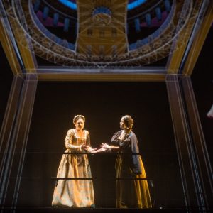 Messa in musica da Antonio Di Pofi, compositore che può vantare una lunga consuetudine con cinema e teatro, questa nuova opera in un atto è nata su commissione del Teatro Verdi di Trieste, dove ha appena debuttato con successo. Merito di un allestimento ben realizzato e – ancor più – di un efficace meccanismo drammaturgico, che la musica asseconda attraverso una scrittura in grado di valorizzare i dialoghi e la parola: condizione fondamentale, questa, per descrivere le emozioni dei personaggi, così come emergono dal libretto di Giuseppe Manfridi e Guido Chiarotti. La scorrevole versificazione affida agli interpreti descrizioni di eventi storici (a Milano si stanno celebrando, nel 1491, le sontuose feste per le nozze di Ludovico il Moro e Beatrice d’Este, con la supervisione artistica di Leonardo) che ciascuno declina in maniera diversa, a partire dalle proprie esperienze.