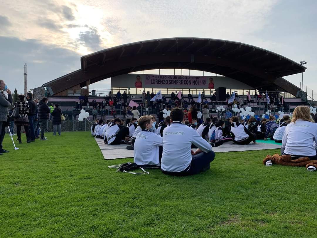 Paolino Fabbri, assistente del gruppo 2011, quello di Lorenzo, ha la voce strozzata dalla commozione: c’era anche lui quel tragico pomeriggio che sta diventando un germe di vita nuova. E con lui il responsabile tecnico del settore giovanile, Francesco Troccoli: “Un allenatore più importante di me lo ha portato a giocare più in alto” dice. Babbo Luigi indossa sulle spalle la maglia rosanero del figlio.