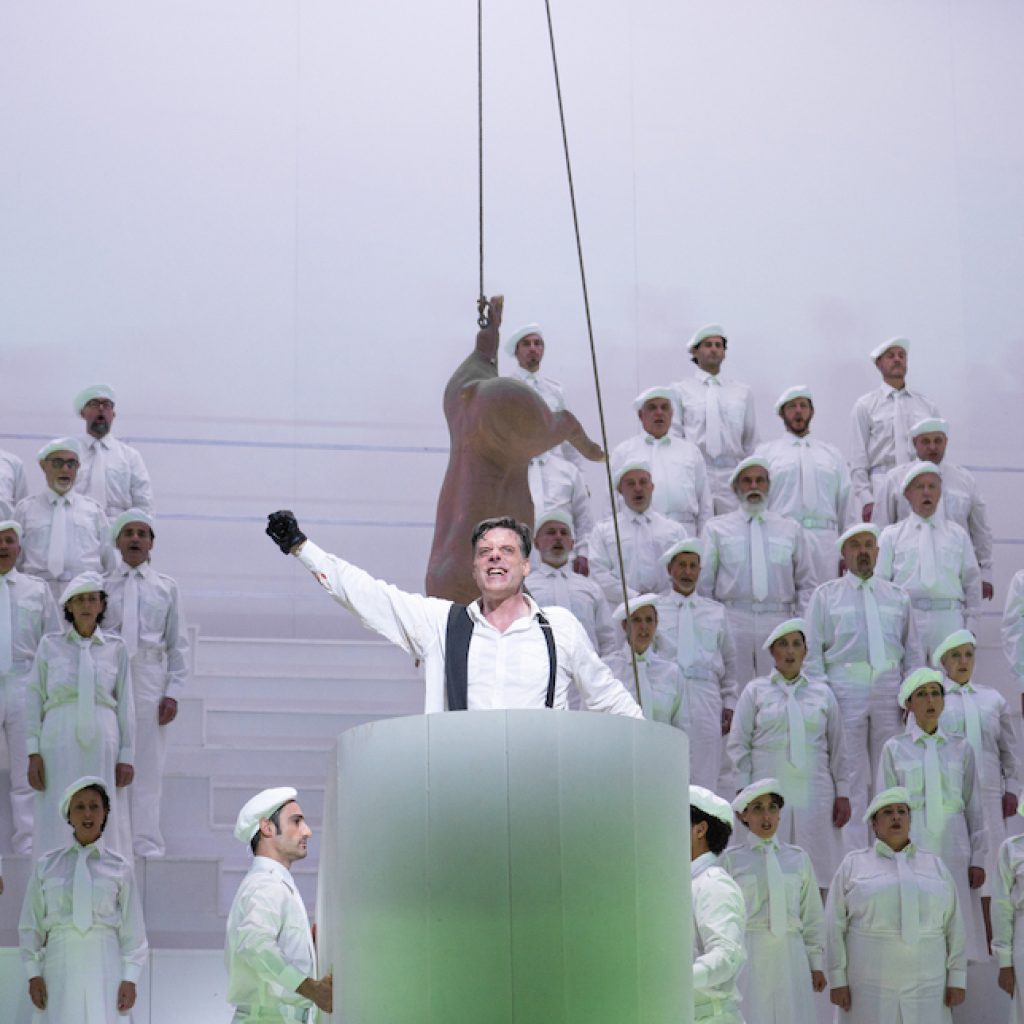 Di origine australiana, seppure europeo per formazione, questo talentatissimo e provocatorio regista – drammaturgo e uomo di teatro ad ampio spettro – ha colto con intelligenza la sfida implicita nell’opera di Boito: liquidare ogni religione e gettare alle ortiche i buoni sentimenti, a favore di un nichilismo sulfureo e non immune da risvolti ironico-grotteschi. Pur prendendosi molte libertà, lo spettacolo di Stone procede con mano felice e – dettaglio non trascurabile – rispetta grammatica e sintassi operistica, senza mai entrare in conflitto con la musica.