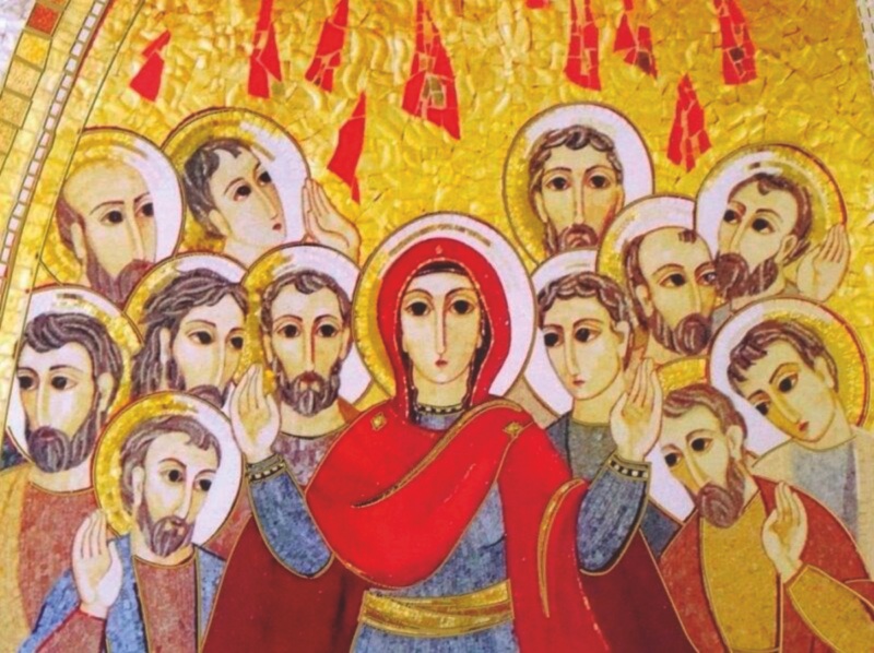 Durante la sua vita terrena Gesù aveva ripetutamente promesso che non li avrebbe lasciati orfani, perché avrebbe ottenuto dal Padre lo Spirito della verità – che il mondo non può ricevere – come perenne compagno del loro cammino e che avrebbe insegnato loro ogni cosa (Gv 14,16), facendo riaffiorare alla mente tutto ciò che aveva detto loro. Il vento gagliardo e le fiamme di fuoco che li avvolgono il mattino di Pentecoste operano nei discepoli la metamorfosi del buio in splendida luce, che illumina il loro rapporto con il Messia. La rivelazione dell’insegnamento di Gesù incomincia a prendere corpo.