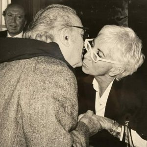 Nel 1963 l’amica Flora Carabella, moglie di Marcello Mastroianni, le presenta il regista Federico Fellini (nella foto dal Catalogo Archivi Oliva, un incontro tra i due, ndr) e così Lina Wertmüller diventa il suo aiuto sul set di 8 ½. “Da qui nasce un’amicizia profonda e una stima reciproca. – commenta il sindaco di Rimini, Jamil Sadegholvaad – All’interno dell’Archivio Fellini, alla Cineteca del Comune di Rimini, è conservata la sceneggiatura originale appartenuta alla regista”.