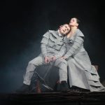 Il bellissimo spettacolo, concepito lo scorso anno per il Teatro Nazionale Croato Ivan Zajc di Fiume (diretto da Blažević), è stato adesso ripreso sempre nella stessa sede. Realizzato con una grande economia di mezzi è potentissimo sul piano emotivo, grazie all’accurato lavoro gestuale nello scavo della psicologia dei personaggi. Nel primo e quarto atto, sul fondale, scorre un filmato dove troneggiano i volti ingigantiti dei due protagonisti: una sorte di lente destinata a ingrandire l’azione che si svolge in palcoscenico. I numerosi fari adagiati sulla scena indirizzano il loro fascio luminoso – talvolta in modo persino violento – su qualche dettaglio, obbligando così chi guarda (light designer Dalibor Fugošić) a seguire il flusso della narrazione visiva, cui danno un fondamentale contributo i plastici movimenti di Selma Banich: le danze vengono tagliate, però sono coreografati altri momenti fondamentali, come Ondine e silfidi. L’unico arredo è dato da due imponenti sedie, dalle quali Macbeth e la moglie non si alzano quasi mai (quella della Lady diventerà simile a una carrozzina quando lei è ormai moribonda), sopraelevate su un basamento di pietra: un trono di foggia barbarica, realizzato da un gruppo di dieci studenti dell’Accademia di Belle Arti di Brera, coordinati dallo scenografo Edoardo Sanchi. Costumi neri e semplicissimi (di Sandra Dekanić) per tutti, tranne quelli dei due protagonisti, grigio-fango, destinati a colorarsi sempre più con il rosso del sangue.