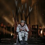 Protagonista Giorgio Surian che, dopo tanti anni di carriera internazionale come basso, ora canta ruoli baritonali. Il cantante fiumano – autentica gloria della sua città – affronta il personaggio di Macbeth con voce un po’ usurata, ma che nella zona grave riesce ancora a trovare fascinose risonanze: la sua interpretazione punta soprattutto sull’idiomaticità delle parole e la ricchezza degli accenti. A questo si aggiunge un’ampia gamma gestuale e mimica che, di volta in volta, permette di far emergere la bramosia del potere, la crudeltà e il ripiegamento finale. È un soprano lirico Kristina Kolar, acclamata artista stabile del Teatro, ma la voce sa essere molto penetrante in acuto, così che la sua Lady Macbeth assume un’intensa caratura drammatica. Magnetica in scena, con lo sguardo manipolatore – è seduttiva, imperiosa, ma pure protettiva e complice – avvolge il marito, ostentatamente più vecchio di lei, fino a spingerlo all’omicidio e poi a sostenerlo una volta conseguito il potere. Il suo crollo finale assume sfumature struggenti in grado di rendere tutta la penosa devastazione di una mente malata.