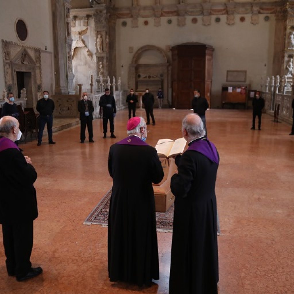 Penso che siamo rimasti tutti colpiti dalla felice coincidenza dell’incipit del “santo viaggio” del caro padre Vescovo Mariano con le prime ore del mattino del Sabato santo. Letta in luce di fede e inquadrata con lo ‘specchietto retrovisore’ di quel “giorno solenne” (Gv 19,33), tutta la sua vita mi si affaccia come sospesa tra i travagli del Venerdì della Passione del Signore e le doglie della Domenica di Risurrezione. In effetti il silenzio immobile del Sabato santo si trascina dietro messaggi che ci restano incisi nell’intimo. Ci ricorda che non c’è crocifissione che non conosca la sua deposizione. Non c‘è lacrima che non si sciolga nella dolcezza di un sorriso. Non c’è peccato che non intercetti una redenzione. Non c’è amarezza che non trascolori in consolazione. Non c’è sepolcro che non trovi una pietra che non si possa rotolare…