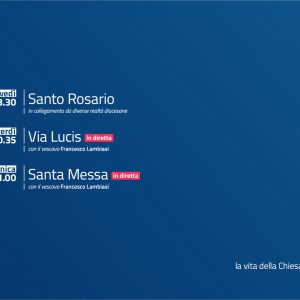 Preghiera mariana da alcuni santuari mariani e realtà della diocesi, introdotta dal Vescovo di Rimini: dal 4 maggio al 28 maggio, solo dal lunedì al giovedì, alle ore 18,30 su Icaro TV (canale 91) oppure alle ore 20,30 su Icaro 211(canale 211).