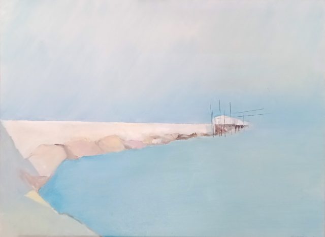 Quasi “un urlo non più trattenuto che però si traduce però in un segno rarefatto, dove la caratteristica diventa il semplificare, il togliere, il sottrarre. Le opere di Minarini sono inconfondibili: l’essenziale che attraverso i colori diventa sospensione del tempo e mistero sereno, nulla di incombente ma il mare calmo dell’eternità. La ‘sua’ Rimini è nei paesaggi, nelle marine che sembrano quasi in attesa, però senza affanni. Come se la tecnica, il preciso controllo del segno e del pennello, avessero il compito di ricondurre quella passione infinita, quello ‘sfogo’, nell’alveo di un respiro intimo. Anche nell’ultima mostra al Museo della Città, conclusasi lo scorso 9 febbraio, così come nelle tante esposizioni precedenti o nei murales di Borgo San Giuliano, questo raffinato e prosciugato ‘senso del tempo’ emerge in ogni dipinto, in ogni cenno cromatico, mai prescindendo dall’adorato colore blu. Che, diceva, ‘collima straordinariamente con il mio carattere. Per un mese intero sono rimasto seduto nello studio con attorno cinque tele tutte dipinte di blu. Avevo bisogno di questo blu attorno. Il fatto che spesso dipingo il mare non è perché ne sia un appassionato. Preferisco le montagne. Tuttavia, quando cammino sulla spiaggia (soprattutto d’inverno) provo una grande sensazione di spazio e di luce. Ho letto che a chi nasce in riva al mare e fa dell’arte o poesia resta qualcosa dentro…'”.