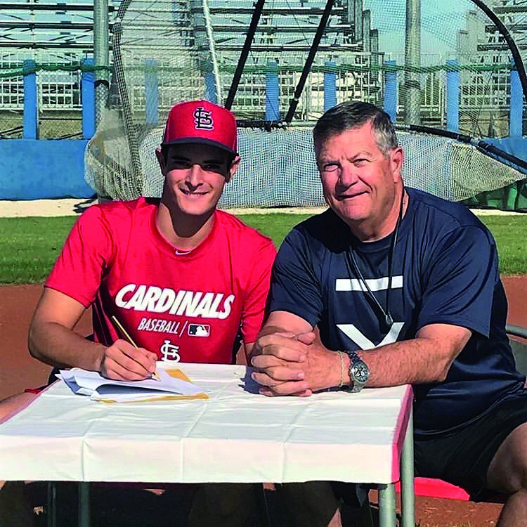Sedici anni e un cannone al posto del braccio destro. Il tutto condito da umiltà e lucidità difficili da riscontrare anche in persone ben più mature. Non può quindi essere un caso che Ettore Giulianelli, giovane promessa riminese del baseball internazionale, abbia recentemente firmato un contratto (nella foto) di sette anni con i St. Louis Cardinals, seconda franchigia più vincente della MLB. Una favola quella del pitcher romagnolo classe 2003, cominciata assieme ai Falcons di Torre Pedrera coi quali si è cucito sul petto la bellezza di quattro scudetti giovanili.