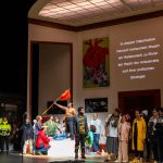 Nel complesso si prova però una sensazione di stordimento visuale, in cui diventa faticoso seguire una trama di storie sempre più aggrovigliata e dove – a complicarne ulteriormente la leggibilità – scorrono dei video con le narrazioni delle accidentate vicende personali dei migranti e degli stessi interpreti vocali, tutti rigorosamente non austriaci. A farne le spese, purtroppo, è soprattutto la musica di Mozart. Nessuno dei personaggi riesce a stagliarsi con le sue reali caratteristiche, sicché la drammaturgia psicologico-vocale (sempre calibratissima nei lavori mozartiani) resta costantemente in ombra. Un vero peccato, perché Thomas Hengelbrock trae magnifiche sonorità dalla Camerata Salzburg e dallo splendido Arnold Schönberg Chor, preparato da Erwin Ortner: basterebbe pensare allo straziante finale, che ovviamente non ha nulla di encomiastico, dove il suono – prima di scomparire – si assottiglia fino a stemperarsi in sonorità sempre più lievi e sfumate.