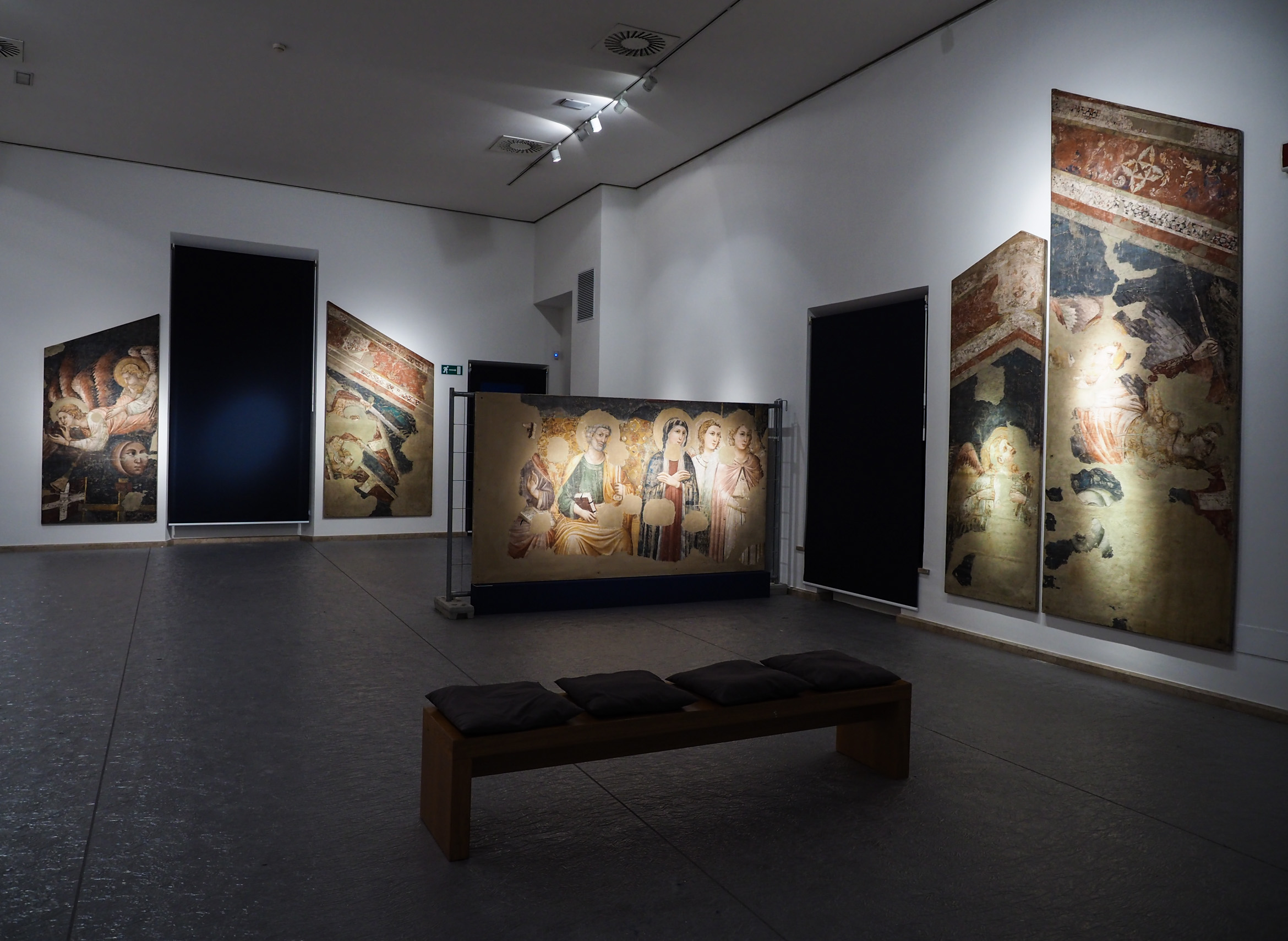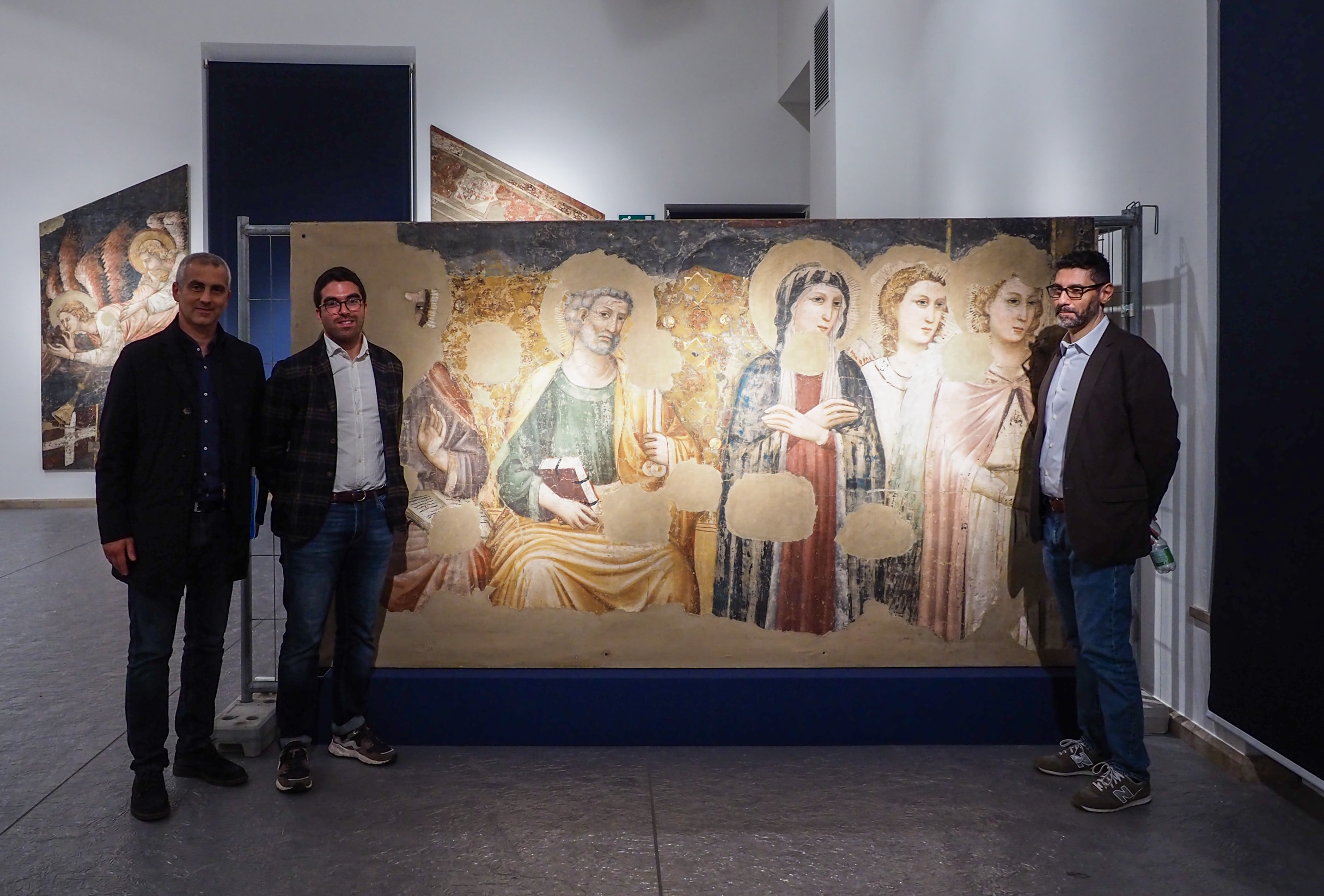La vera grande sorpresa, almeno al momento, è non tanto nel ritorno del Giudizio universale nella sala del museo che da sempre porta il nome della grande opera del Trecento. La sorpresa è nel come sia tornata: scomposta, con i vari pezzi bene esposti ad altezza d’uomo, uno accanto all’altro. “Abbiamo pensato questo percorso anche con la diocesi che è proprietaria del bene naturalmente e con la collaborazione dell’Università Ca’ Foscari, di Giulio Zavatta e di Giulio Pojana”. Il Giudizio è così “perché c’è bisogno di studiarlo tecnicamente, c’è bisogno di capire meglio questo capolavoro che è stato indagato tantissimo dal punto di vista iconografico. Oggi lo vogliamo indagare anche dal punto di vista tecnico, comprendere meglio i metodi con cui è stato realizzato, conservato, salvato dalla sua condizione originaria dentro Sant’Agostino dopo il terremoto, per poterlo custodire meglio e per poter magari pensare, questo è l’auspicio, a un intervento di restauro importante che possa consentire all’opera di affrontare il proprio futuro nel miglior modo possibile”.