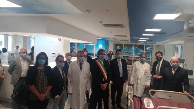 14 posti letto per terapia intensiva (estendibili a 18) a cui si aggiungono 12 posti letto per terapia sub intensiva, estendibili a 16. 6,1 milioni di euro la spesa. Quasi 1.600 metri quadrati al quarto piano del palazzetto Dea (Dipartimento Emergenza Accettazione) con 14 posti letto permanenti per la terapia intensiva, estensibili a 18, e 12 per quella sub intensiva, estensibili a 16, a cui si aggiungono ulteriori 900 metri quadrati (2.500 in totale) per 30 letti dedicati alla degenza ordinaria. Quasi 1.600 metri quadrati al quarto piano del palazzetto Dea, a cui si aggiungono ulteriori 900 metri quadrati (2.500 in totale) per 30 letti dedicati alla degenza ordinaria. E’ il primo modulo dell’Hub regionale e nazionale per la Terapia intensiva, inaugurato oggi all’Ospedale Infermi di Rimini: un intervento da 6,1 milioni di euro nell’ambito del progetto di Regione e Ministero della Salute (26 milioni di euro totali di investimento). Il presidente della Regione Stefano Bonaccini: “In tempi rapidissimi nasce una rete di alto livello al servizio dei nostri territori e del Paese. Un passo avanti nella giusta direzione: rafforzare la sanità pubblica e universalistica”. Già completati i lavori avviati a inizio aprile, il reparto sarà operativo da metà giugno dopo l’installazione delle più innovative apparecchiature elettromedicali. L’intervento è stato realizzato anche grazie ai fondi raccolti con la campagna regionale “Insieme si può”.“E’ il tassello romagnolo di un grande progetto nazionale: – ha spiegato il direttore Ausl Romagna, Marcello Tonini – il potenziamento di strutture intensive, più strutturale ed efficiente per rispondere a pandemie (speriamo non ce ne sia più bisogno) e ad ogni emergenza sanitaria”. L’Hub regionale sarà dotato in totale di 110 posti per una popolazione di 1,1 milioni di abitanti: in precedenza i posti disponibili erano 70.