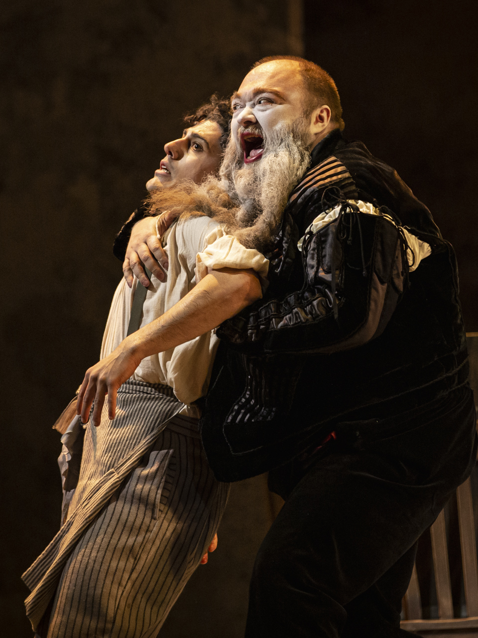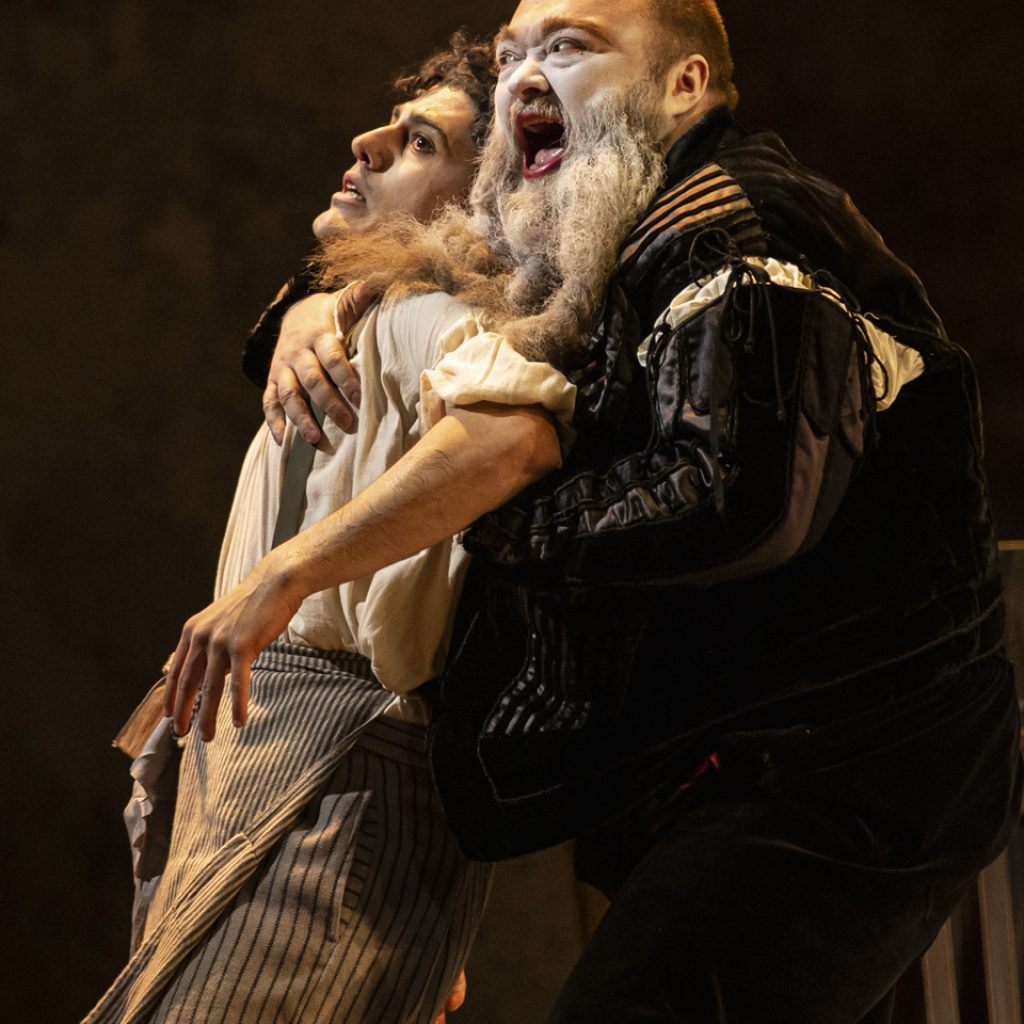 In palcoscenico se la giocano i due protagonisti: il soprano polacco Ewa Vesin che è in grado di reggere un ruolo estenuante, riuscendo a imprimere al personaggio di Renate notevole efficacia espressiva, e il baritono Leigh Melrose, che si rivela un po’ sottodimensionato vocalmente, ma ottimo attore. Accanto a loro ruota una folta schiera di comprimari, cui tocca ricoprire anche più di un ruolo: fra questi spiccava l’ottimo baritono ucraino Andrii Ganchuk, nelle duplici sembianze del servo e di Faust. Ai cantanti e agli artisti del coro si mescolano poi i componenti della compagnia teatrale (Sud Costa Occidentale) della Dante, in una fusione apparsa del tutto naturale.