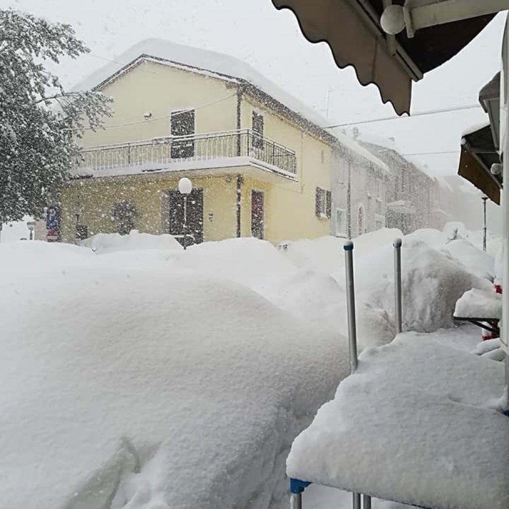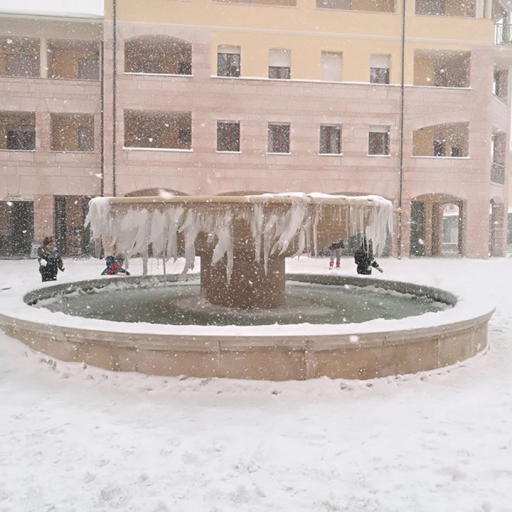 Villa Verucchio, fontana di piazza Europa tutta ghiacciata