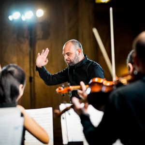 Autore di Dove non si tocca in mare per violoncello e orchestra d’archi è Pasquale Corrado, coinvolto anche nella duplice veste di direttore – attività che alterna a quella compositiva – dei quattro lavori proposti. Un brano caratterizzato da grandi glissando orchestrali, dove le potenzialità dell’orchestra d’archi vengono dilatate: sia utilizzando in modo percussivo le casse armoniche degli strumenti più gravi sia, nel finale, affidando al violoncello solista – l’eclettico Michele Marco Rossi che affronta l’impegnativa prova con la massima sicurezza – l’insolito compito di cantare una melodia popolare.