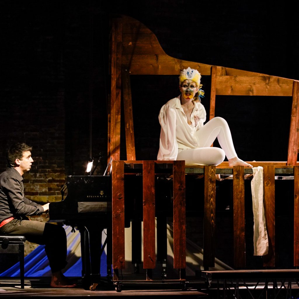 La seconda novità, The Pirate Who Does Not Know the Value of Pi, anche questa su un testo di Ostashevsky, portava la firma di Lucia Ronchetti. Immutato l’organico e gli esecutori, mentre cambiava l’interprete vocale: la spiritosa e versatile Esther-Elisabeth Rispens. Il divertente confronto fra i pirati (ossia gli strumentisti) e un pappagallo (la cantante) assume nella partitura della compositrice romana surreali tratti di comicità. Prendendo le mosse dalla riflessione su come comunicare attraverso linguaggi differenti, i dialoghi assumono un andamento molto teatrale, che il pianoforte – abilmente trasformato, sempre dal medesimo team registico, in una sorta di relitto di nave – coagula su un doppio binario semantico: testuale e musicale.
