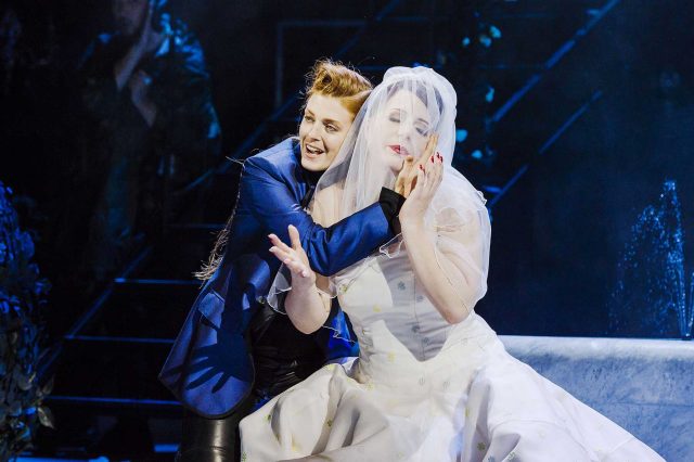 Per una compagnia di canto proveniente dall’Opera di Lipsia, sebbene volonterosa e ben affiatata scenicamente, rendere in una lingua non propria una vasta gamma di accenti è stato uno scoglio quasi insormontabile, che ciascuno ha risolto come meglio poteva. Sejong Chang, nei panni di un atletico Figaro, per dare sfumature e inflessioni comiche al suo canto ha spesso fatto ricorso al parlato; accanto a lui, invece, Olena Tokar è stata una Susanna fluida e sicura, oltre che piena di verve. L’aitante Conte di Mathias Hausmann ha evidenziato buoni mezzi vocali, seppure non sempre gestiti nel modo migliore, mentre Gal James non è riuscita a rendere credibile il personaggio della Contessa. Del tutto plausibile in vesti androgine (un Cherubino che, nelle intenzioni registiche, avrebbe dovuto rievocare Bob Dylan), la corretta Wallis Giunta mostrava i limiti di un canto un po’ incolore. Fra i personaggi minori da ricordare Magdalena Hinterdobler, una Barbarina figlia dei fiori di apprezzabile sostanza vocale; Karin Lovelius, una Marcellina ben timbrata benché il personaggio fosse ridimensionato dal taglio della sua unica aria; e il bravo Patrick Vogel che ha sfoderato voce sonora nel piccolo ruolo di Don Curzio.
