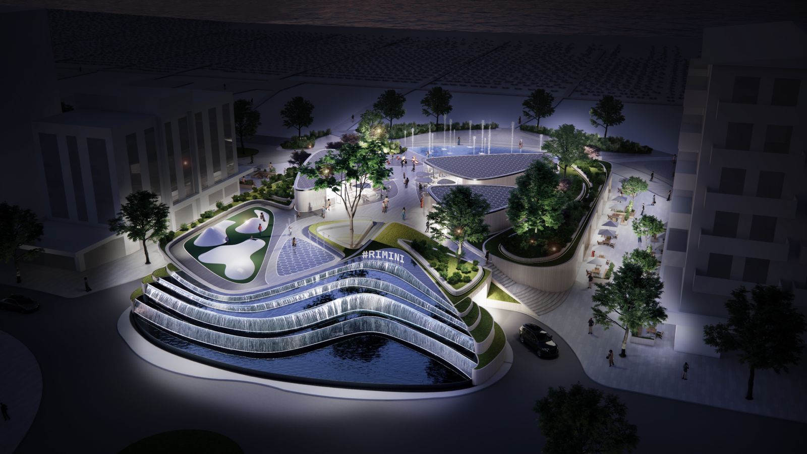 Acqua, verde, linee fluide, spazi da vivere e da condividere: sono questi alcuni degli elementi che guidano la proposta progettuale della nuova piazza Marvelli, un intervento di riqualificazione urbana che si propone di unire le esigenze di accessibilità, al design e alla valorizzazione dell’ambiente naturale in cui si colloca, trasformando uno spiazzo in iconica porta di accesso alla zona a mare della città.