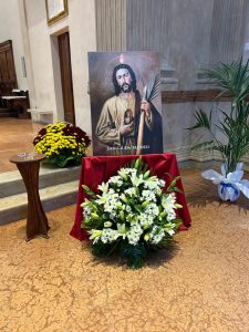 Avvicinandosi al Santo, Teresa ne ha approfondito anche la figura. «I Vangeli apocrifi dicono che San Giuda era cugino di Gesù, figlio di Alfeo e Maria di Cleofa. È morto martire in Persia, insieme all’apostolo Simone, perché non si era piegato ai pagani. Viene raffigurato con la fiammella dello Spirito Santo e con la clava del martirio. Ma ciò che più mi colpisce è quell’immagine di Gesù che porta sempre sul petto: è il segno dell’incontro che ha vissuto, un volto concreto, non un’idea. È bellissimo pensare che girasse il mondo mostrando il volto che aveva incontrato e amato».