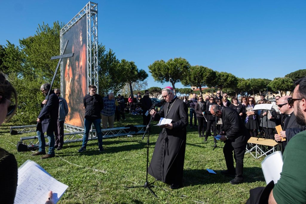 la Domenica delle Palme per pregare la Via Crucis, organizzata dalla comunità di Rimini di Comunione e liberazione. Partenza dal Ponte di Tiberio.