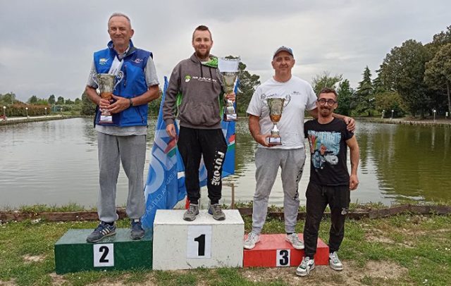 Al via delle quattro ore di gara 28 pescatori ben posizionati su tre delle quattro sponde del lago riminese. Al termine vittoria e titolo sono andati al giovane cesenate Nicola Valdifiori, davanti nell’ordine al sammarinese Renzo Francioni e al riminese Fabio Moretti (nella foto © Fabio Berardi, il podio della gara).