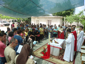 Nella foto l’ Eucarestia di Pentecoste, nel cortile del Centro di Uznova