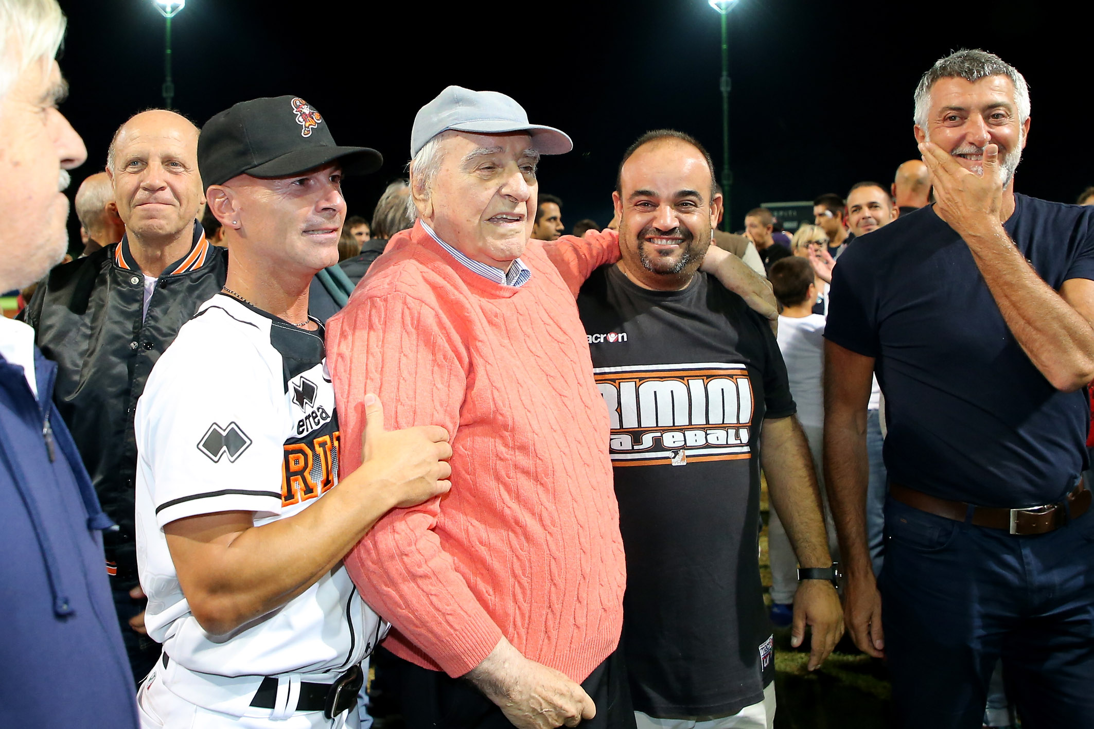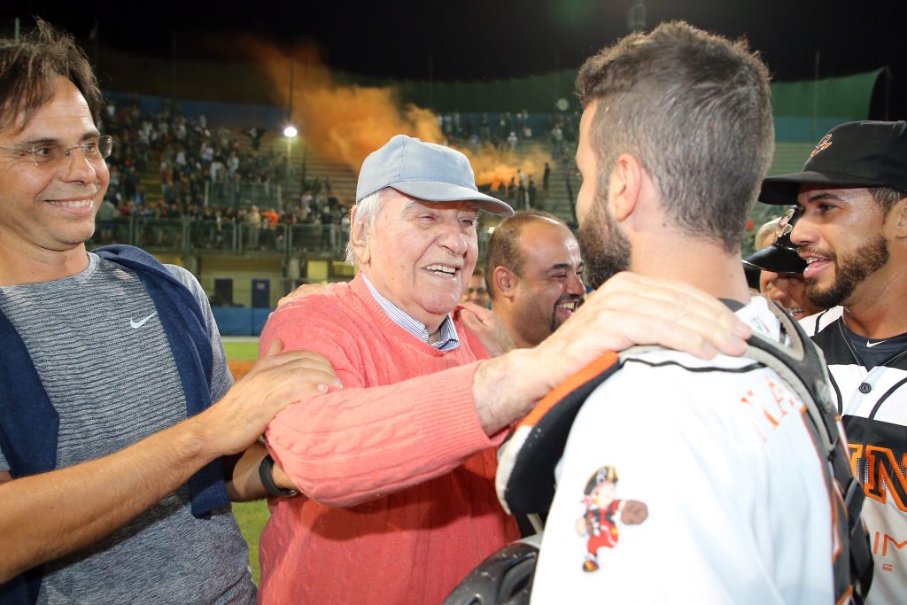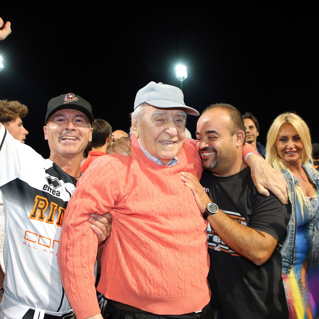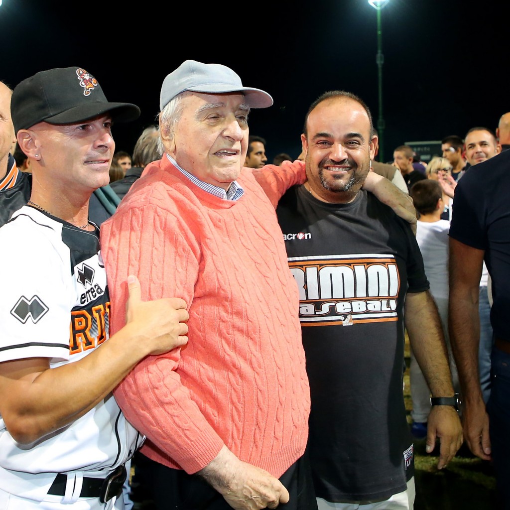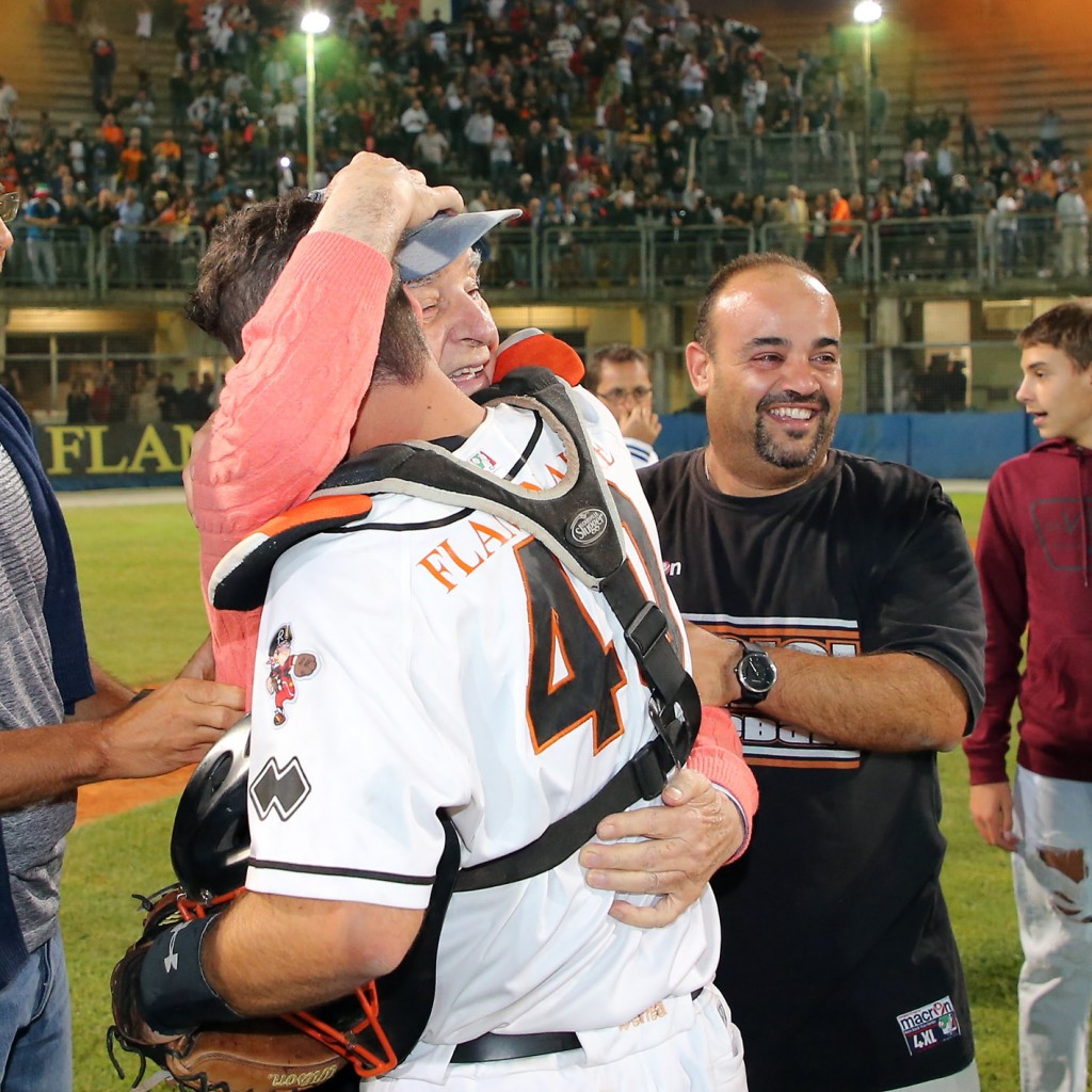 L’ultimo faccia a faccia tra ‘cugine’ con il tricolore in palio risale al 2013, quando la T&A, dopo essere caduta a Serravalle nei primi due incontri, venne a prendersi lo scalpo dei Pirati nella loro tana, inanellando tre successi consecutivi. Un precedente che brucia ancora e che torna di strettissima attualità dopo il duplice blitz messo a segno dai neroarancio in repubblica. Già, un uno-due che avvicina subito Noguera & co. allo scudetto. Garauno è bellissima. Un incontro dominato dai lanciatori, un match che vede Rimini piazzare l’acuto al quinto assalto: base ball a Celli, bunt di sacrificio di Zappone e valida di Malengo, che sposta il compagno in terza e avanza a sua volta in seconda sull’azione, nel box Bertagnon, che picchia un singolo pesantissimo (2 pbc). Il margine è importante, anche perchè Rosario tira alla grande, non offrendo opportunità ai titani, che solo all’8° si scuotono con il punticino della speranza sul rilievo Hernandez (pbc di Reginato per l’1-2). Al 9° la T&A ci prova, ma sui buoni contatti di Epifano e Imperiali la difesa riminese si fa trovare pronta. E il primo blitz è cosa fatta. La sera dopo cambia tutto, nel senso che adesso sono gli attacchi a fare la voce grossa. I Pirati smontano Florian, peraltro ben poco aiutato dalla sua difesa, all’inizio della terza ripresa, nello score uno 0-6 che sembra raccontare un match già concluso. Non è così, però. Nel box si scuote pure San Marino e Richetti piega le ginocchia in più occasioni, 5-7 sul tabellone a fine 5°, quando il manager Ceccaroli si rivolge a Escalona. Il mancino tiene per 1.1 riprese, dopo di che la pallina passa nelle mani di Teran. E’ staffetta anche per la T&A, che regge bene con Cherubini e Coveri, per crollare invece con l’esperto Oberto. E’ il 9° e i Pirati chiudono a doppia mandata il risultato confezionando un clamoroso ‘big inning’ da 8 punti, con la ciliegina sulla torta rappresentata dal Grande Slam di Infante, primo (e unico) fuoricampo dei riminesi nei playoff. Sul 2-0 nella serie, come accennato, non può non tornare alla mente la finale del 2013, quella che vide Magrane effettuare 228 lanci in appena 48 ore per San Marino a irretire i Pirati. La T&A, poi, ha un parco lanciatori stranieri davvero vasto (anche se Ascanio non è a posto), tanto che in garatre può schierare come starter Kimborowicz, un pitcher che non ha neppure un lancio nel braccio in queste Italian Baseball Series. ‘Ciga’, che è peraltro squalificato (e con lui Illuminati, che si è beccato addirittura quattro giornate protestando con linguaggio colorito per un balk sanzionato a Richetti in garadue), decide invece di invertire la rotazione dei suoi due uomini, con Hernandez da subito e Rosario di rincorsa. Una staffetta tremendamente efficace, anche se il primo squillo è dei titani (solo-homer di Reginato 4°). Rimini impatta al 5° (singolo di Celli, che poi ha buone gambe per correre a casa sul doppio di Zappone) e all’8° mette la freccia: l’eroe è ancora lui, l’italo-venezuelano Lino Zappone, suo il singolo che permette a Vasquez di pestare il piatto per quel 2-1 che non cambierà più. Ora bisogna solo stringere dietro, arroccarsi attorno a Rosario, che dai primi vagiti del 7° inning ha rilevato un ottimo Hernandez. Il suo rilievo è esemplare, tanto che in quelle tre riprese passate sul mound colleziona 9 out consecutivi, di fatto un mini ‘perfect game’. San Marino, pur in ritardo di un solo punto, non riesce a creare la benchè minima occasione e quando il pop di Chiarini si spegne nel guantone di Caseres, in una delle sue sporadiche apparizioni in questi playoff, è solo tempo di abbracci e lacrime, in diamante e sui gradoni dell’antico tempio del baseball riminese, dove quasi 2mila ‘fedeli’ si sono ritrovati per regalare un’adeguata cornice allo scudetto numero 13 di questo glorioso club. Federico Celli (5/9 con 5 pbc) è l’mvp della finale scudetto, anche se è difficile indicare un unico protagonista in questa travolgente (e inattesa, lo ripetiamo) cavalcata. Ed è quasi commovente vedere alla fine in mezzo al diamante Rino Zangheri, il presidentissimo che in questo 2017 si è visto costretto a trascurare un po’ la sua ‘creatura’ per motivi di salute. Il sorriso del ‘pres’, felice come un bambino mentre viene amorevolmente stritolato dai suoi ragazzi, è l’immagine più bella che ci portiamo dentro.