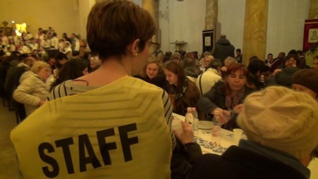 “Il difficile non è servire ai tavoli – commenta affermato Nicolò della comunità Papa Giovanni – ma mangiare insieme. È questo che abbiamo voluto realizzare. L’uno al fianco dell’altro, senza distinzioni“.