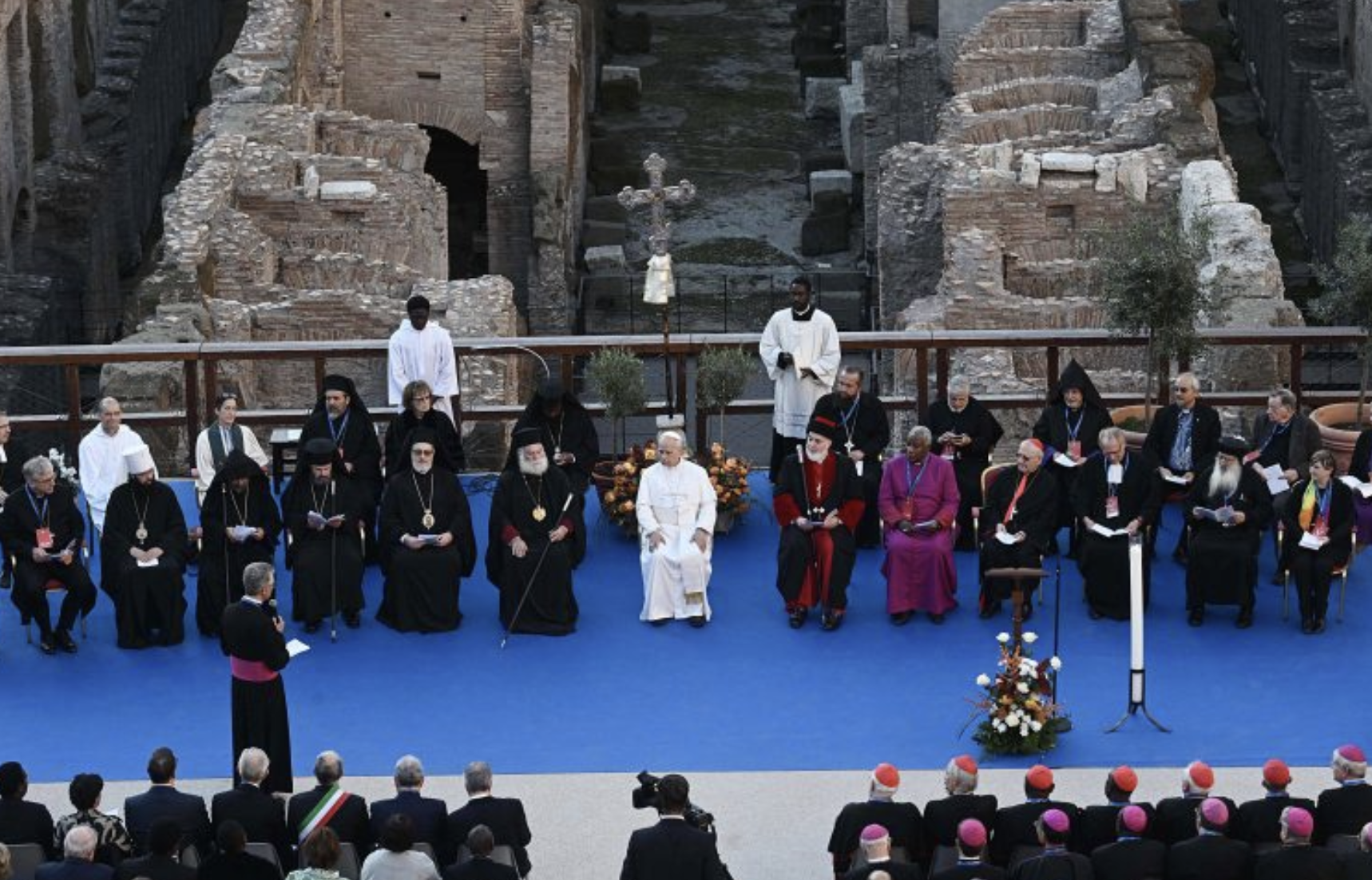 «Abbiamo pregato per la pace secondo le nostre diverse tradizioni religiose e ora ci siamo raccolti insieme per lanciare un messaggio di riconciliazione», ha detto il Santo Padre all’inizio del suo intervento ieri al Colosseo in occasione di ‘Daring peace’ il meeting internazionale promosso dalla comunità di Sant’Egidio, una preghiera interreligiosa a cui hanno partecipato i leader mondiali delle diverse confessioni.