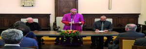 La festività del patrono della Città e della Diocesi cade quest’anno esattamente nel 50°anniversario dell’inizio del Concilio Ecumenico Vaticano II, un evento che le più alte personalità religiose e politiche del tempo e di oggi hanno considerato e continuano a valutare come un evento epocale, tra i più importanti e significativi dello scorso Novecento. Vorrei iniziare questa mia riflessione estraendo dallo scrigno dei testi conciliari una ’perla’ tra le più preziose: “Il cristiano che trascura i suoi impegni temporali, trascura i suoi doveri verso il prossimo, anzi verso Dio stesso, e mette in serio pericolo la propria salvezza eterna” (GS 43). A questa citazione vorrei accostarne un’altra, che riscontro sul versante laico: “Nella vita religiosa della comunità cristiana si ritrova ancora intatto ciò che altrove è andato perduto: capacità espressive e recettive sufficientemente differenziate per afferrare gli aspetti di una ’vita sbagliata’, soprattutto dopo che si è interrotta la tradizione del movimento operaio. Nelle società turbocapitaliste, che premiano chi mira al successo individuale, vediamo altrimenti atrofizzarsi ogni sensibilità terapeutica per le patologie sociali, per il fallimento dei progetti esistenziali, per le lacerazioni dei contesti di vita” (Jurgen Habermas). È con questo spirito di sincero, cordiale interessamento alle sorti della nostra Città, che mi accosto a voi, Autorità, per riprendere un dialogo che ci vede tutti preoccupati per quanto sta avvenendo e impegnati per non far mancare l’apporto della nostra specifica competenza alla soluzione di una crisi che continua e continuerà ancora ad affliggere in modo drammatico poveri, malati, immigrati, famiglie, giovani.