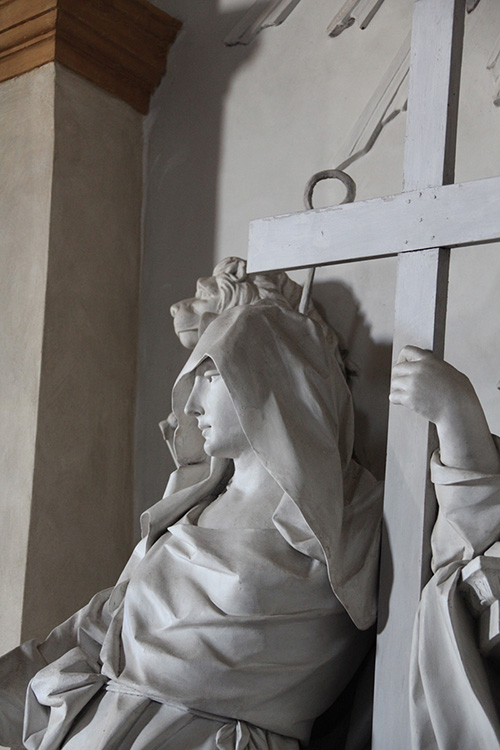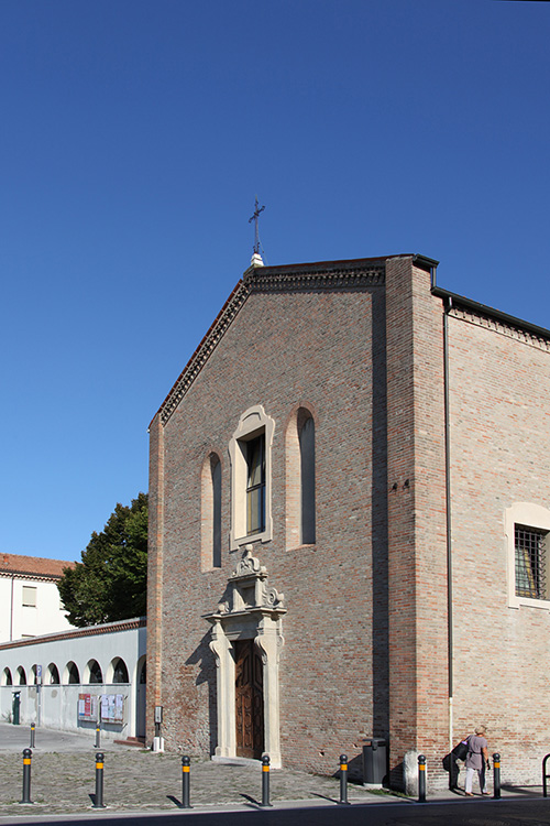 Appare semplice e solida, quasi isolata al margine di un grande piazzale informe dovuto ad uno “sventramento bellico”: vi insisteva una caserma ottocentesca polverizzata dai bombardamenti del 1943. Per molti secoli questa zona è stata periferica e disabitata nonostante la sua vicinanza al centro cittadino; ora gode di una certa vivacità grazie ad una lottizzazione del primo Novecento e soprattutto alla costruzione in anni recenti dell’attiguo “mercato coperto” cittadino sull’area dell’ex convento di San Francesco, che sorgeva accanto al Tempio Malatestiano.