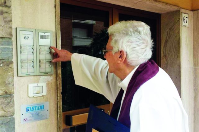 Un sacerdote, un diacono o un laico incaricato che bussa alla porta e si ferma qualche minuto per pregare, ascoltare, condividere una parola di speranza.