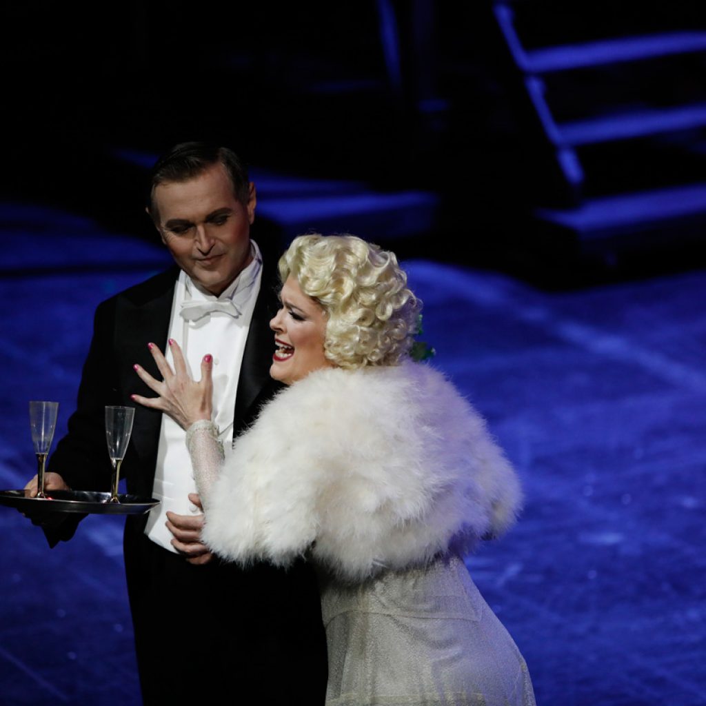 Protagonista il baritono Martin Gantner: un Cardillac solido, in grado di trasmettere il completo disinteresse all’affetto filiale insieme a quella febbrile follia che lo rende incapace di separarsi dai suoi gioielli. Accanto a lui, il soprano Gun-Brit Barkmin è apparsa efficace soprattutto nel comunicare il suo attaccamento al padre. Sempre sicuro nella linea di canto il tenore Ferdinand von Bothmer, elegante ed incisivo nei panni dell’Ufficiale innamorato della figlia di Cardillac. Il ruolo della Dama era affidato a Jennifer Larmore, cantante riciclatasi – dopo tanto Rossini – in questa seconda parte della carriera come novecentista. Ottimo il contributo del suo partner, il tenore Johannes Chum, un espressivo Cavaliere.
