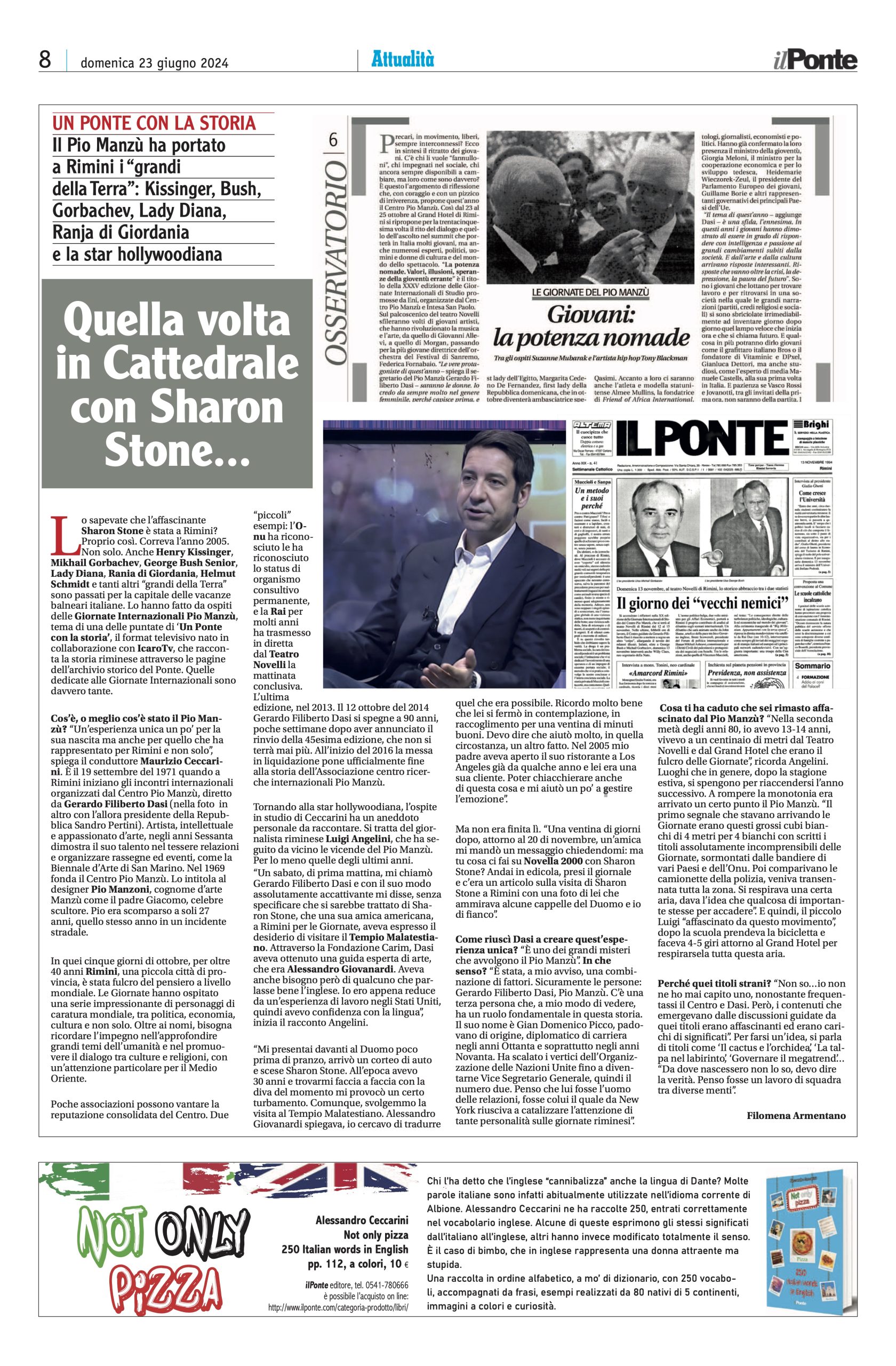“Un sabato, di prima mattina, mi chiamò Gerardo Filiberto Dasi e con il suo modo assolutamente accattivante mi disse, senza specificare che si sarebbe trattato di Sharon Stone, che una sua amica americana, a Rimini per le Giornate, aveva espresso il desiderio di visitare il Tempio Malatestiano.