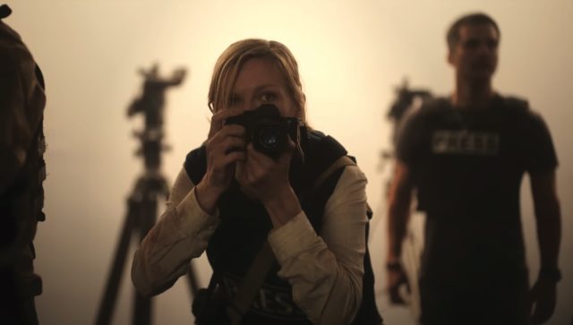 Guerra civile americana. Non stiamo parlando della guerra di secessione avvenuta tra il 1861 e il 1865, ma di un evento contemporaneo, ovviamente cinematografico, raccontato dal regista Alex Garland (sceneggiatore per Danny Boyle ed autore di film come Ex-Machina, Men). Non si sa come il conflitto sia esploso, nulla ci viene spiegato, ci mostra solo gli USA in pieno conflitto, con il Presidente assediato e le forze ribelli pronte a conquistare la Casa Bianca. In uno scenario inquietante si aggira un ridotto gruppo di giornalisti: c’è la fotoreporter veterana (Kirsten Dunst), la giovane desiderosa di apprendere il mestiere della fotografa di guerra (Cailee Spaeny, vista da poco in Priscilla) e due giornalisti (Stephen McKinley e Wagner Moura).