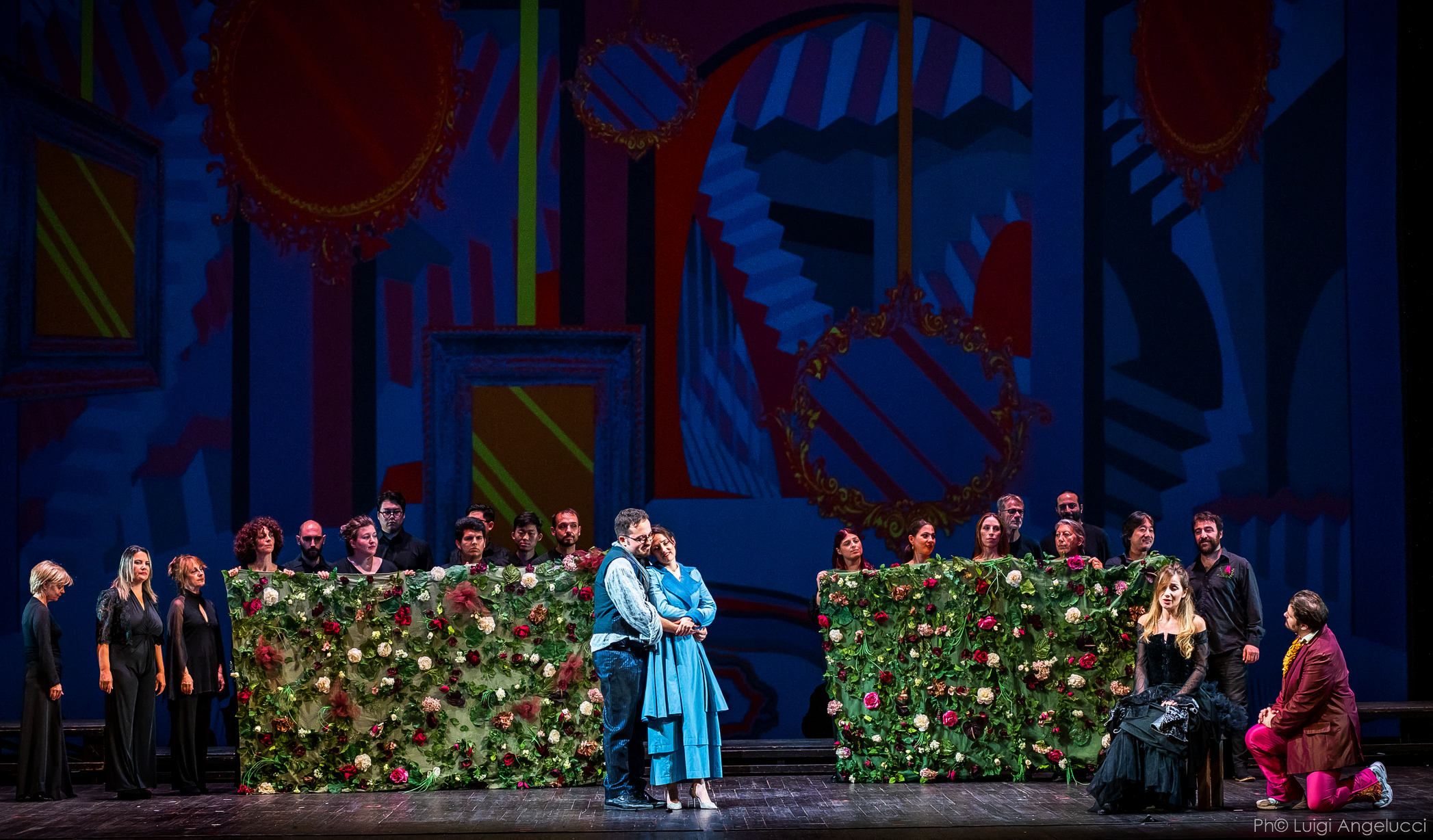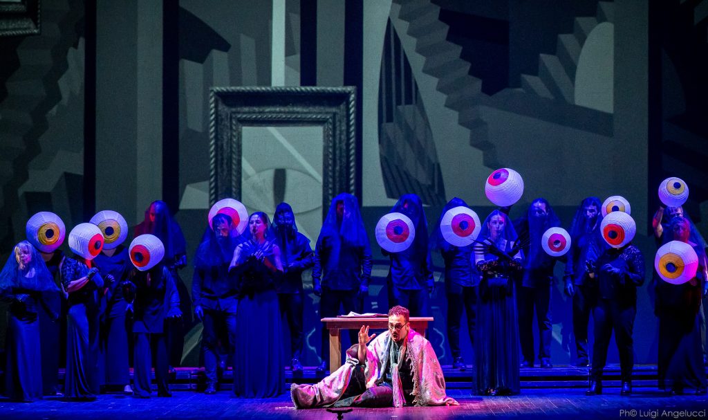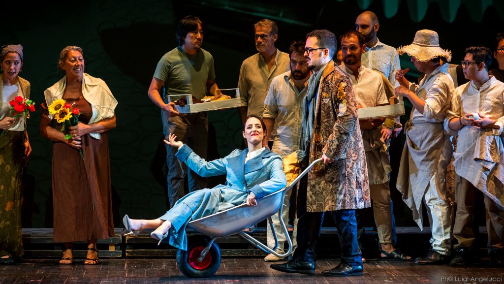 La parte però più interessante era legata all’esecuzione musicale, a cominciare da un cast tutto di giovani che riescono a dare spessore ai propri personaggi. Entrambi innamorati della stessa donna, Don Raimondo (inconsapevole proprietario della casa) e Don Isidoro (il fabbricatore di monete false) erano interpretati dal tenore Antonio Mandrillo e dal baritono Matteo Mancini. Il primo – sempre molto sicuro e corretto – ha saputo imprimere al proprio canto toni accorati da amoroso, mentre il secondo ha sfoggiato una linea vocale più tagliente, conformemente alla mancanza di scrupoli del suo personaggio. Nei panni della volitiva e indomita Annetta ha ben figurato il mezzosoprano Tamar Ugrekhelidze, capace pure di belle risonanze contraltili. La coppia comica era invece composta dai più maturi Eutichio e Sinforosa, interpretata dagli spiritosi Giuseppe Toia e Vittoriana De Amicis, impegnati in divertenti schermaglie innescate dalla patologica gelosia di lei. Chiudevano il cast il soprano Jennifer Turri, alle prese con un ruolo secondario nella storia ma tutt’altro che defilato vocalmente, e il baritono Martin Csölley, nei panni del complice di Don Isidoro.