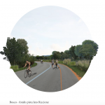 “Il progetto trasforma l’area aeroportuale in un’infrastruttura verde e si pone l’obiettivo fondamentale di ricucire l’area alla costa, ristabilendo una connessione forte e creando un sistema naturale attivo per avere una continuità naturale nella fitta urbanizzazione della costa. Abbiamo individuato tre grandi assi corrispondenti agli attuali viale Ivo Oliveti, via Antonio Meucci e viale Camillo Manfroni, che diventeranno delle trasversali verdi che collegheranno il Parco del Mare al nuovo parco urbano e che permetteranno una prima modifica della mobilità, disincentivando l’uso del mezzo privato. Il verde verrà ulteriormente incrementato con la costituzione del bosco nella parte più a sud del sito: questa azione servirà anche per potenziare il corridoio ecologico del torrente Marano. La costituzione di un parco che superi le cesure create dalla linea ferroviaria e la statale, trasformando i vuoti delle vecchie colonie marine oggi presenti in uno spazio pubblico, permetterà la salvaguardia del varco a mare e un nuovo dialogo tra le città di Rimini e Riccione. Un’importante azione strategica, inoltre, sarà destinare parte dell’area a pannelli fotovoltaici e un pioppeto per biomassa. Il margine che si confronta con l’urbano sarà occupato da una fascia costruita di alcune residenze, uno studentato e un nuovo polo universitario per la facoltà di scienze motorie che oggi è alla ricerca di una nuova sede. La grande porzione a nord in cima alla pista, sarà lasciata immutata per divenire uno spazio utilizzabile durante eventi di diverso tipo come i grandi concerti che oggi deturpano la spiaggia, o attività temporanee come le manifestazioni ‘Al Meni’, ‘Giardini d’autore’ ecc. Infine il margine con l’entroterra agricolo sarà progettato strategicamente con campi agricoli e orti urbani dati in gestione a cooperative locali, con l’obiettivo di creare un servizio che migliori la vita sociale in città e costituendo un dialogo con il rurale. Abbiamo deciso di lasciare come forte segno la pista che rimane immutata per essere riconquistata dai cittadini e, assieme a essa, la strada che perimetra oggi l’aeroporto che sarà trasformata in un grande circuito pedonale e ciclabile. L’ultima importante azione strategica prevede una modifica della mobilità, soprattutto tra la ferroviae la costa, che diminuisca il traffico carrabile e incentivi il trasporto pubblico”.