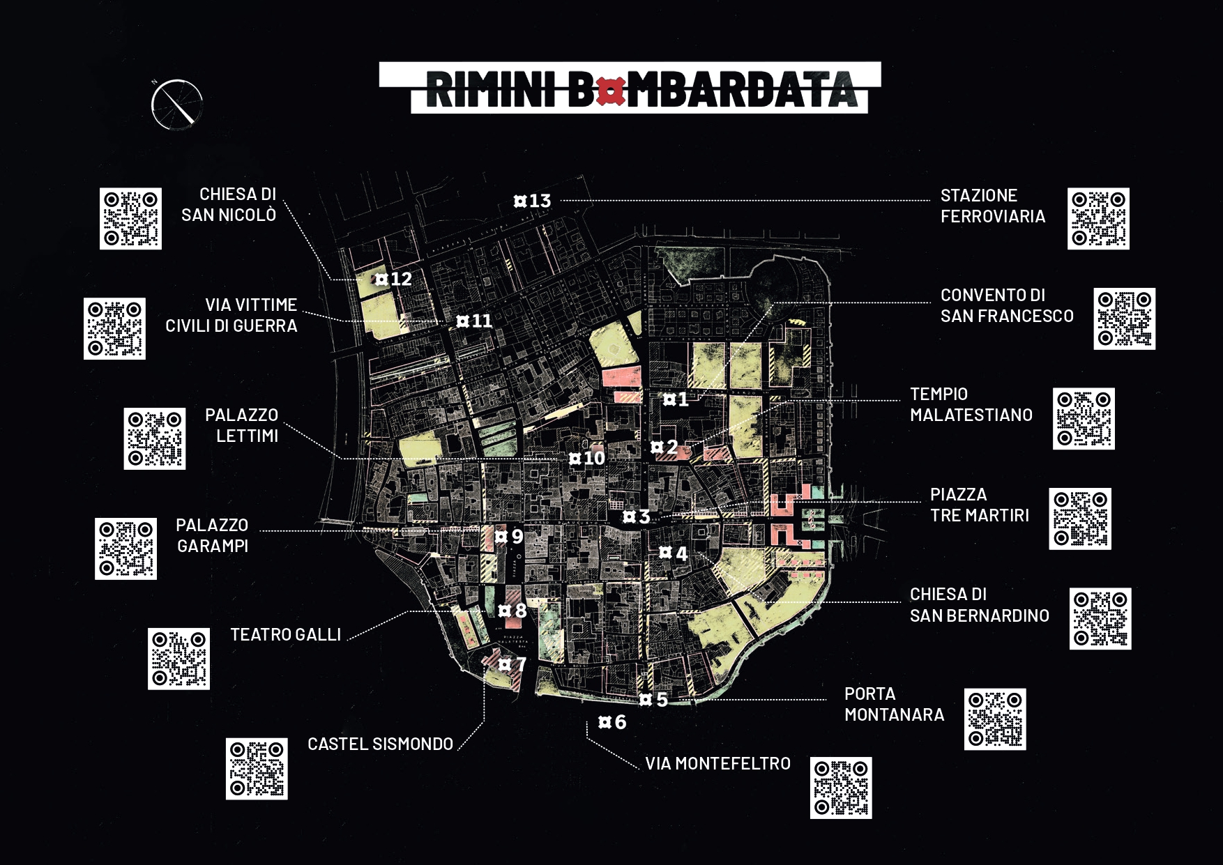 Sul sito riminibombardata.it è disponibile una ricca documentazione storica e fotografica, ma anche una mappa scaricabile con i principali punti del circuito cittadino. A ogni punto è associato una scheda di approfondimento, con materiali fotografici d’archivio e video interviste a chi, in quei luoghi, ha conosciuto e vissuto la guerra. Inquadrando i QR Code si può navigare selezionando luoghi e contenuti.